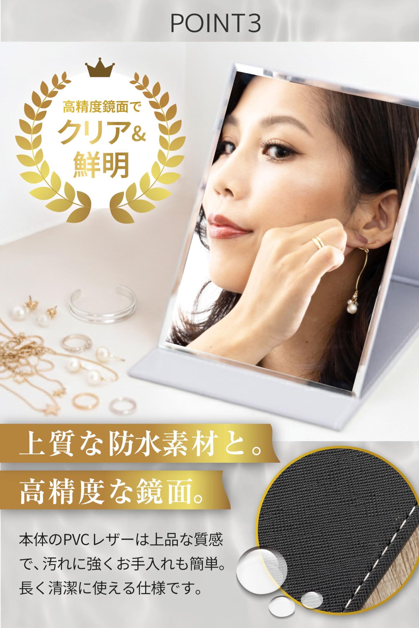 卓上ミラー 卓上鏡 化粧鏡 メイクミラー 折りたたみ 角度調整 軽量 大きめ 持ち運び PVCレザー 汚れに強い メイクアップアーティスト監修 (ブラック, 長さ17 x 幅12 cm)