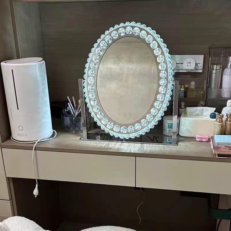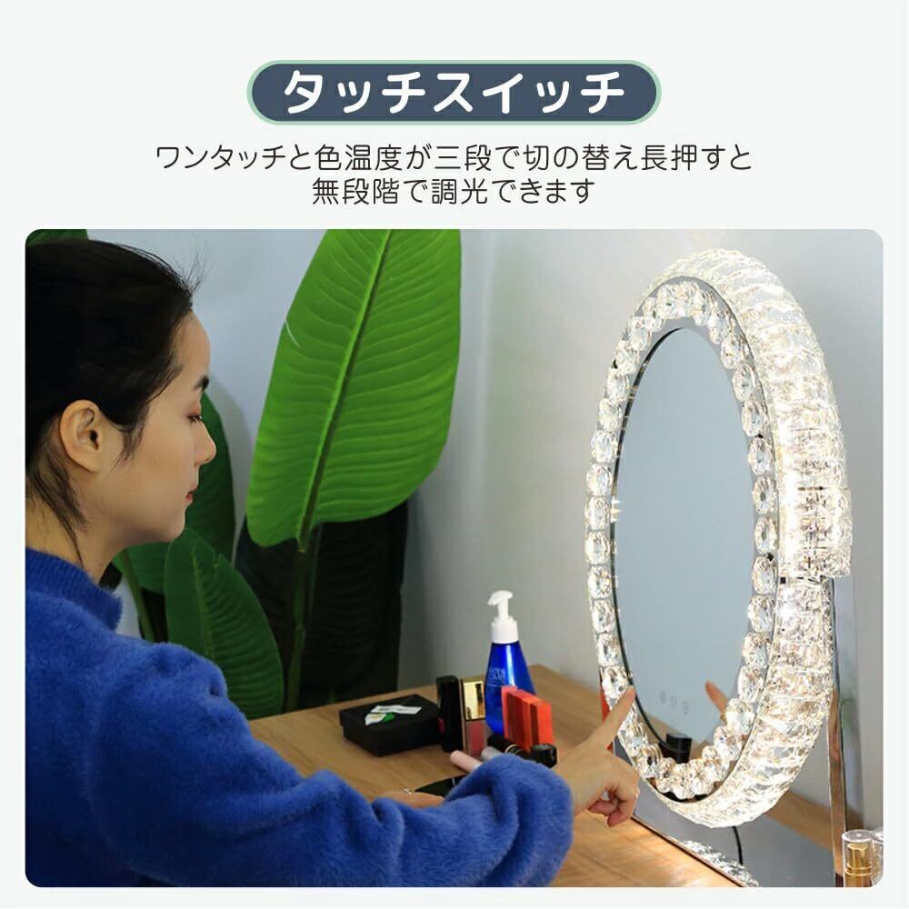 Skypearl 女優ミラー 化粧台 ドレッサー 卓上鏡 三色LED 大きめ クリスタル メイク 化粧鏡 ライト付き 丸型 高輝度化粧鏡 ドレッサーテーブル 卓上ミラー ドレッサー 5年保証 (52×46cm)