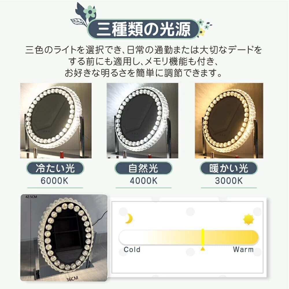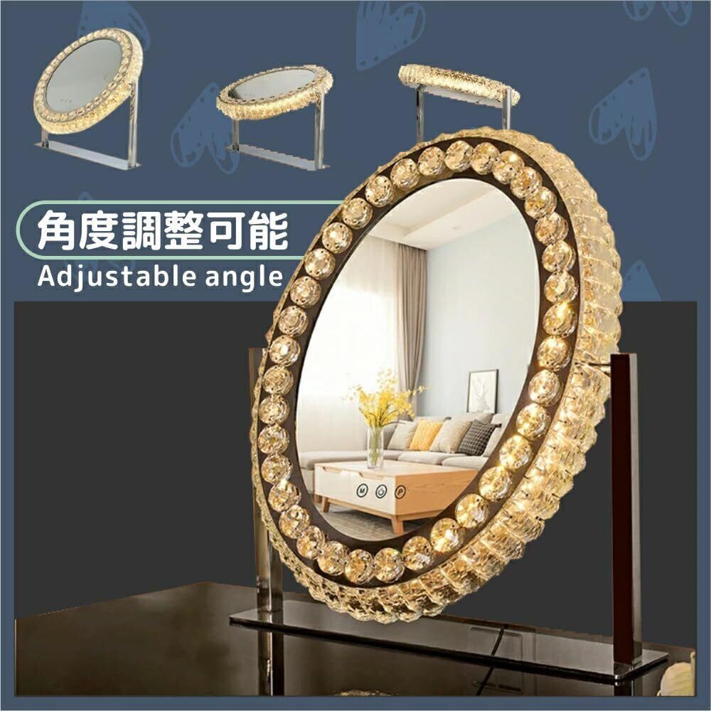【2022最新】Skypearl 女優ミラー 化粧台 ドレッサー 卓上鏡 三色LED 大きめ クリスタル メイク 化粧鏡 ライト付き 丸型 高輝度化粧鏡 ドレッサーテーブル 卓上ミラー ドレッサー 5年保証 (52×46cm)