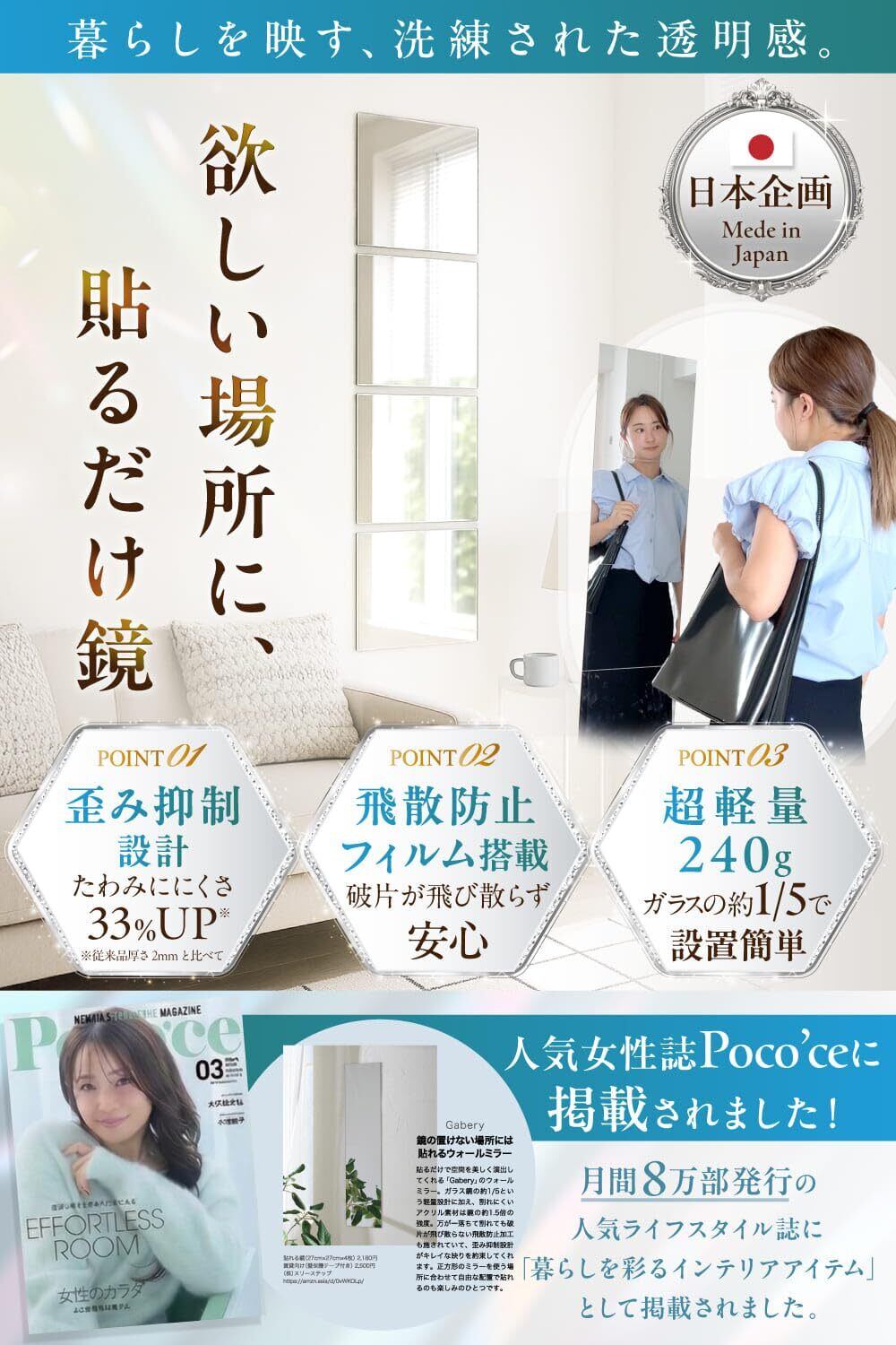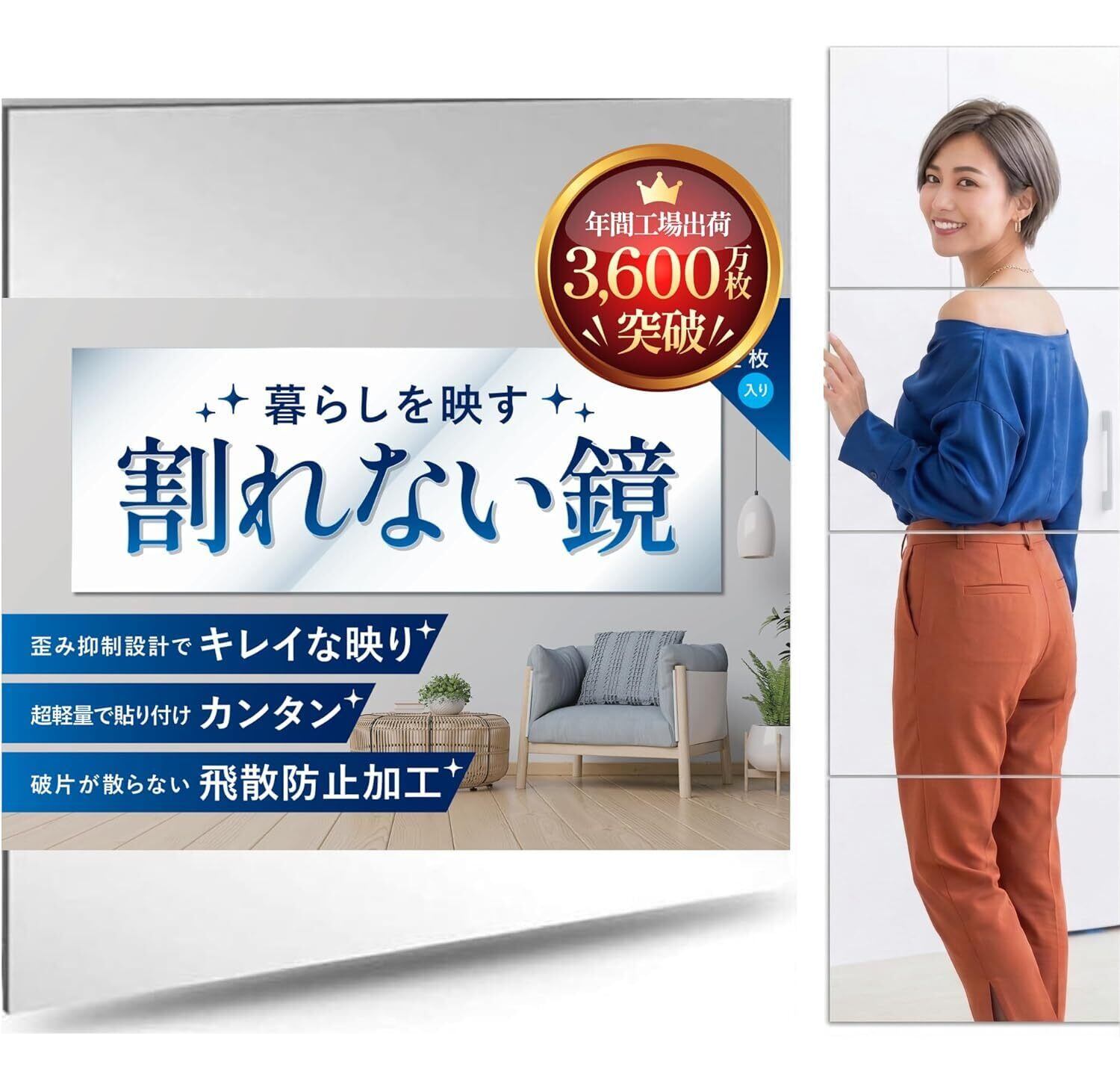 どこでも貼れるアクリル鏡 4枚入り[ガラスのように綺麗な映りでホテルライクな雰囲気を] ウォールミラー