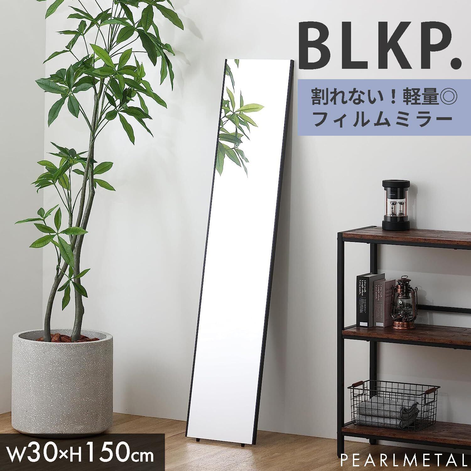 BLKP. パール金属 軽くて割れない 鏡 壁掛け 30×150cm 全身 姿見 フィルムミラー BLKP ブラック 黒 N-7091