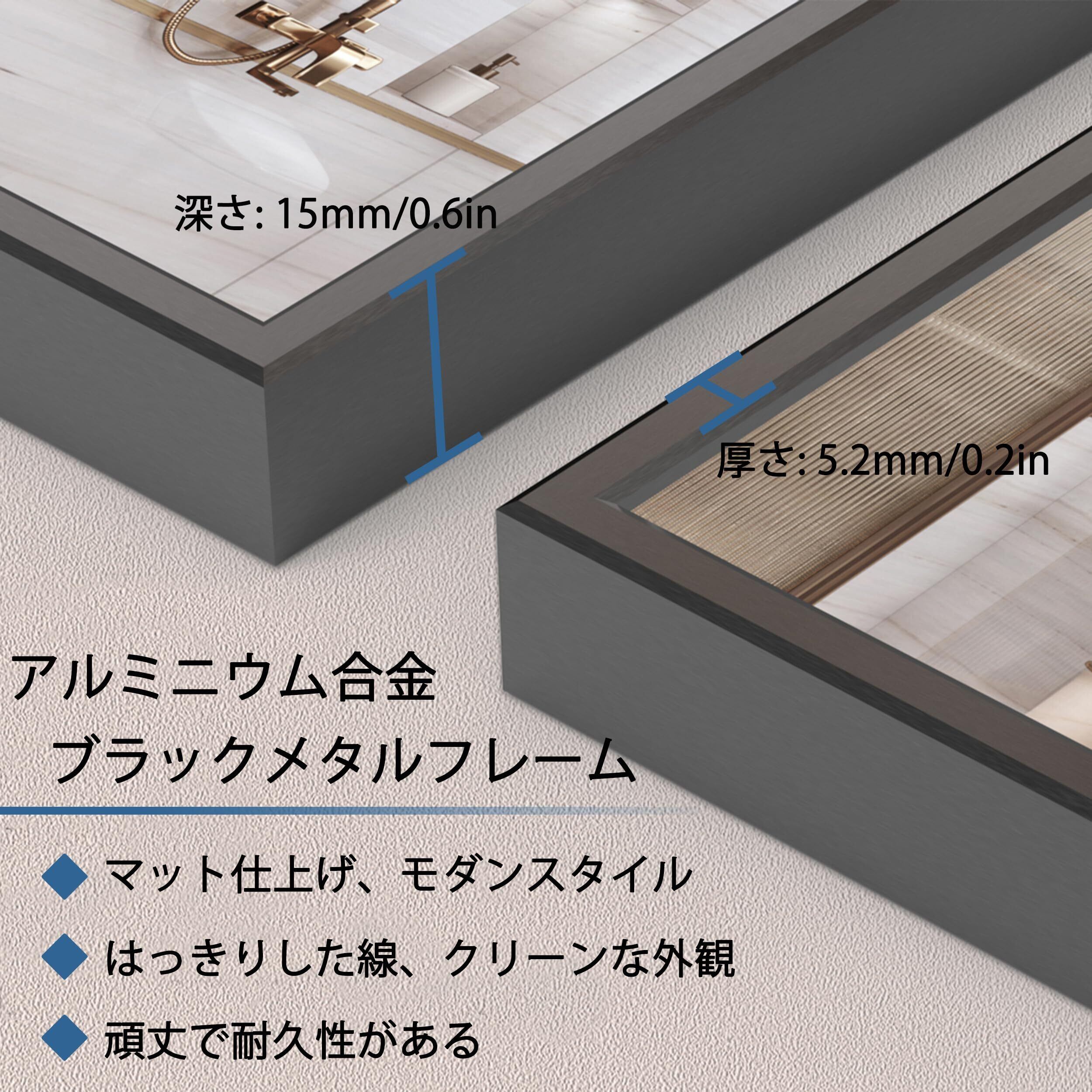 プレミアム素材: この浴室ミラーは3mmシルバーガラスとアルミ合金フレームで作られており、鏡面がより鮮明で明るいです。防水、防湿、防錆、丈夫で耐久性があり、湿度の高い環境でも使用できます