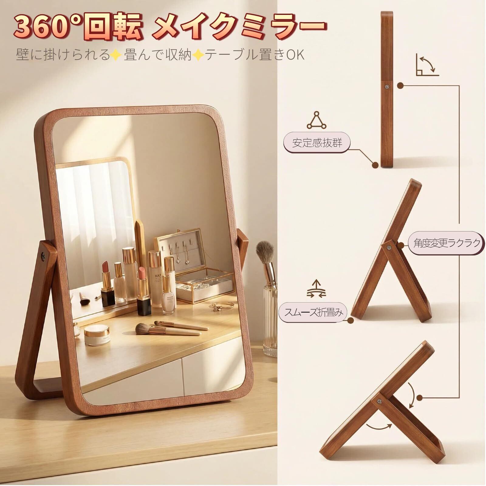 【新春セール】正方形 メイクミラー 卓上鏡 省スペース メイク鏡 ひげ剃り 鏡 角度調整 シンプル デスク インテリア ギフト 母の日 誕生日 結婚祝い バレンタイン 贈り物 プレゼント ナチュラル 中(26×17.5×1.8cm)