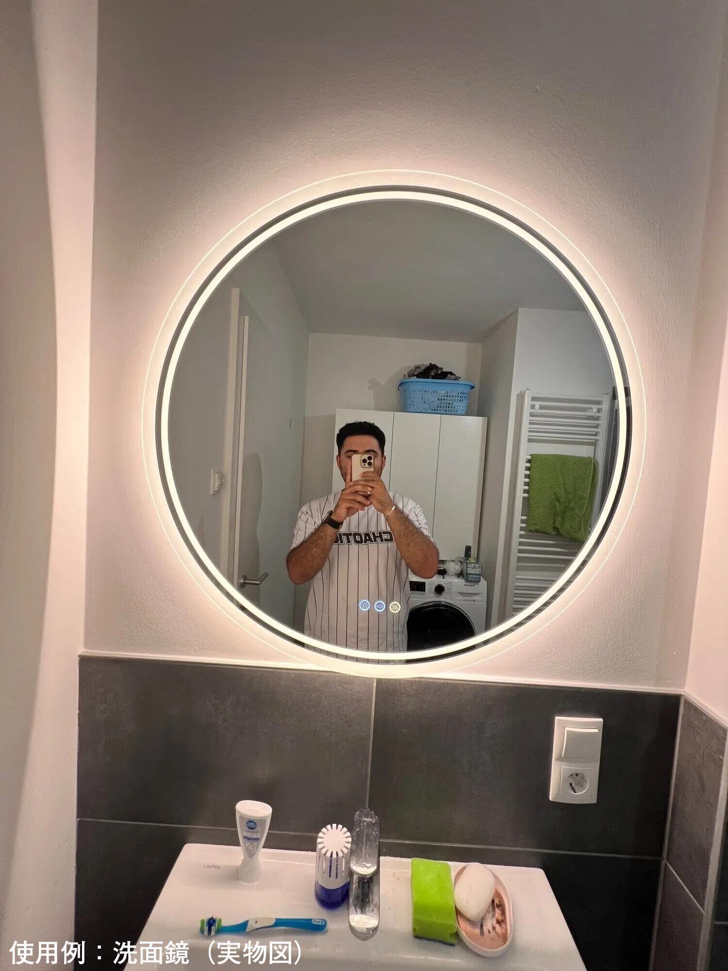 Susire 鏡 壁掛け 女優ミラー 洗面台 led 洗面所 ライト付き 洗面鏡 ドレッサー ウォールミラー 洗面所鏡 丸 トイレ 直径80cm