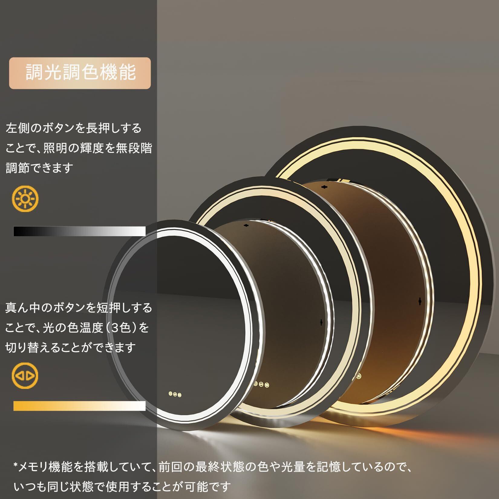 Wisfor 洗面所 鏡 丸型 ミラー LED 照明 浴室鏡 曇らない 無段階調光 3色調整 お風呂鏡 洗面台 壁掛け鏡 化粧鏡 新築 ホテル おしゃれ 60×60㎝