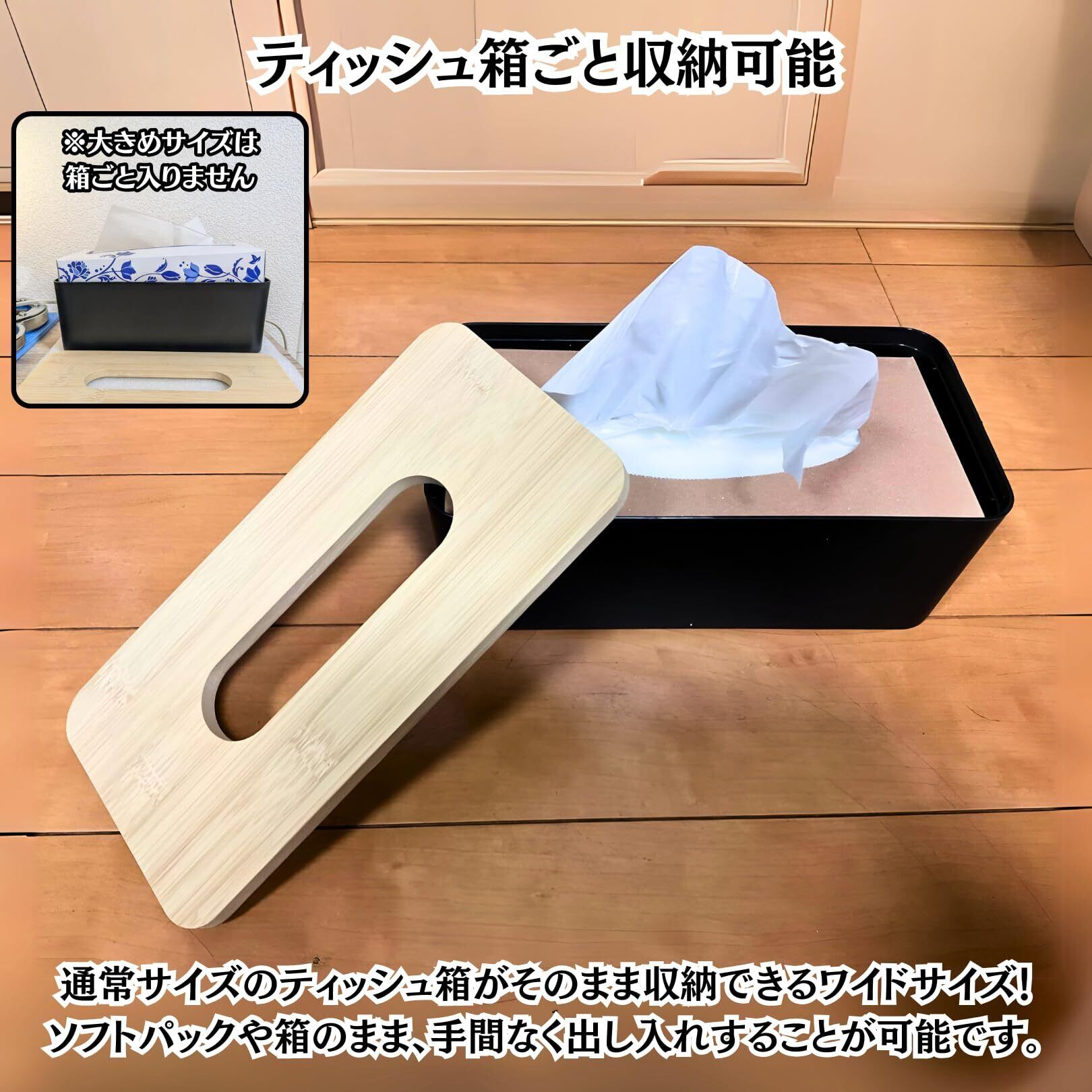 【ティッシュ箱ごと収納可能】ボックスティッシュがそのまま収納できるワイドサイズ!上部が蓋となっており、ソフトパックや箱のまま簡単に出し入れ可能です。※大きめサイズのティッシュ箱は箱ごと収納できませんのでご注意下さい。