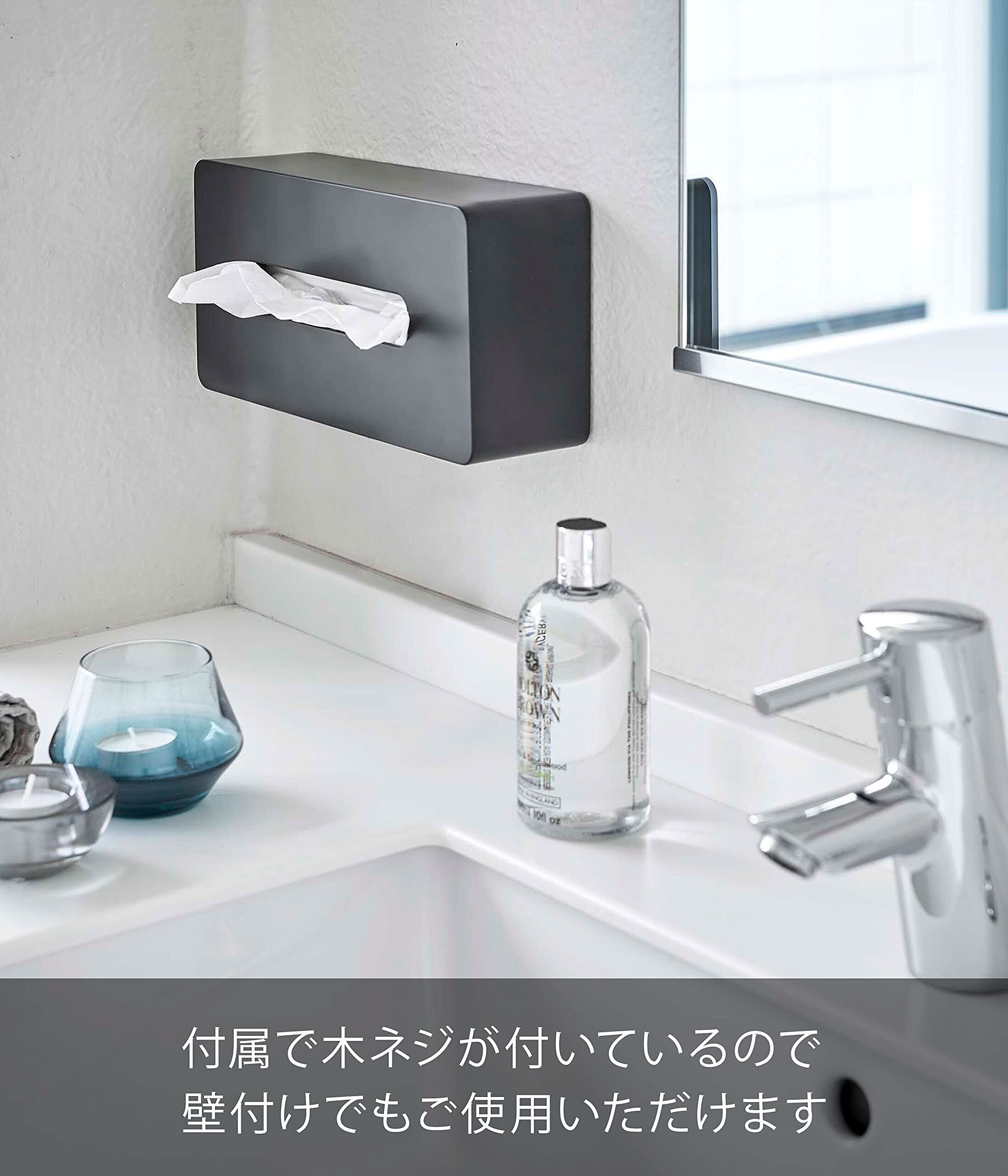 山崎実業(Yamazaki) ティッシュケース レギュラーサイズ ブラック 約W26×D13×H7.5cm タワー tower パッケージを隠して収納 ティッシュカバー 5584