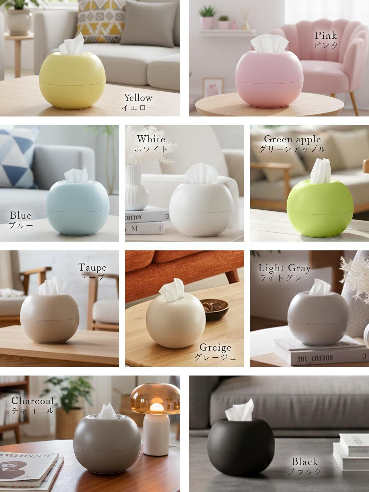 【コロンとしたかわいいデザイン】 リンゴのような形の球体に近い丸いフォルムで、ただのティッシュケースに見えずインテリア性が高く、お部屋をおしゃれに演出します。