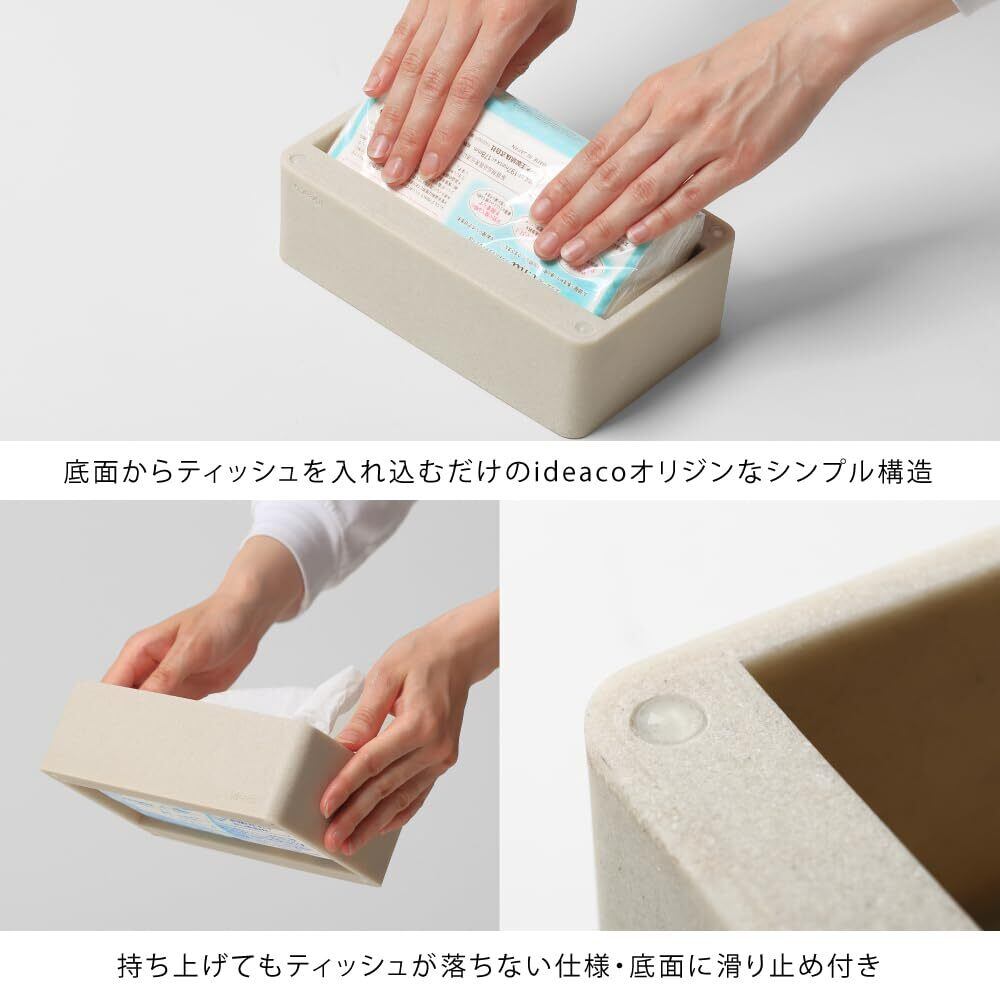 エコな天然石ポリウェア、 袋ティッシュ専用ミニマルデザイン . 市場では様々なサイズのティッシュが販売される中、 薄いタイプのソフトパックティッシュを愛用されている方のご要望にお応えし より省スペースでコンパクトなサイズをテーマに 無駄のない角っとしたマニッシュなインテリアに合うデザインに仕上げました。 . 適度な重みで、ケースが浮き上がらずスムーズにティッシュを引き出せます。 ティッシュの取り替えは、底面からティッシュを入れ込むだけの最もカンタン ideacoオリジンなシンプル構造で、ケースを持ち上げても ティッシュが落ちない仕様になっています。
