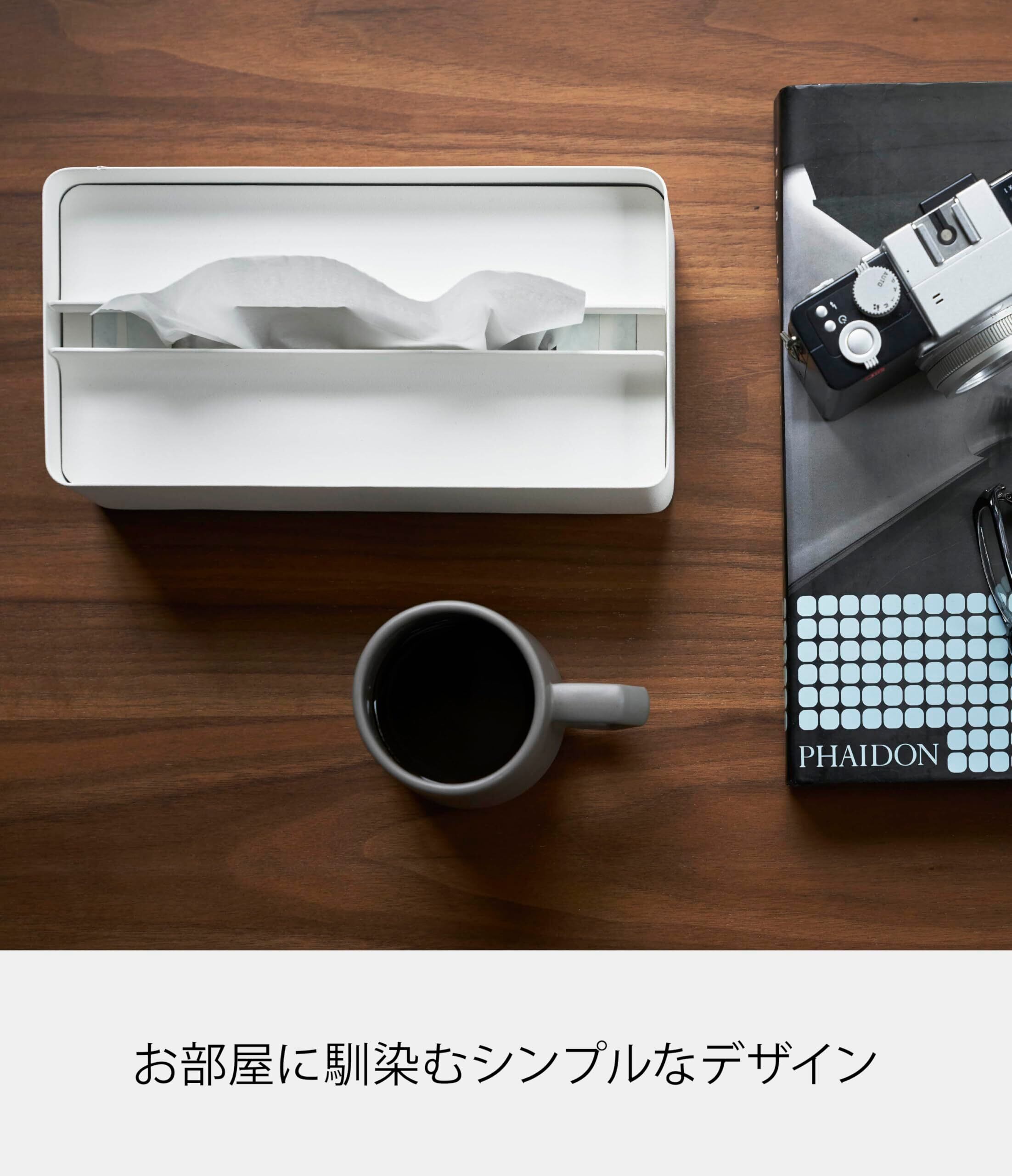 重量感のあるスチール製の蓋だから紙を取り出す時に蓋が浮きにくいペーパータオルケース。