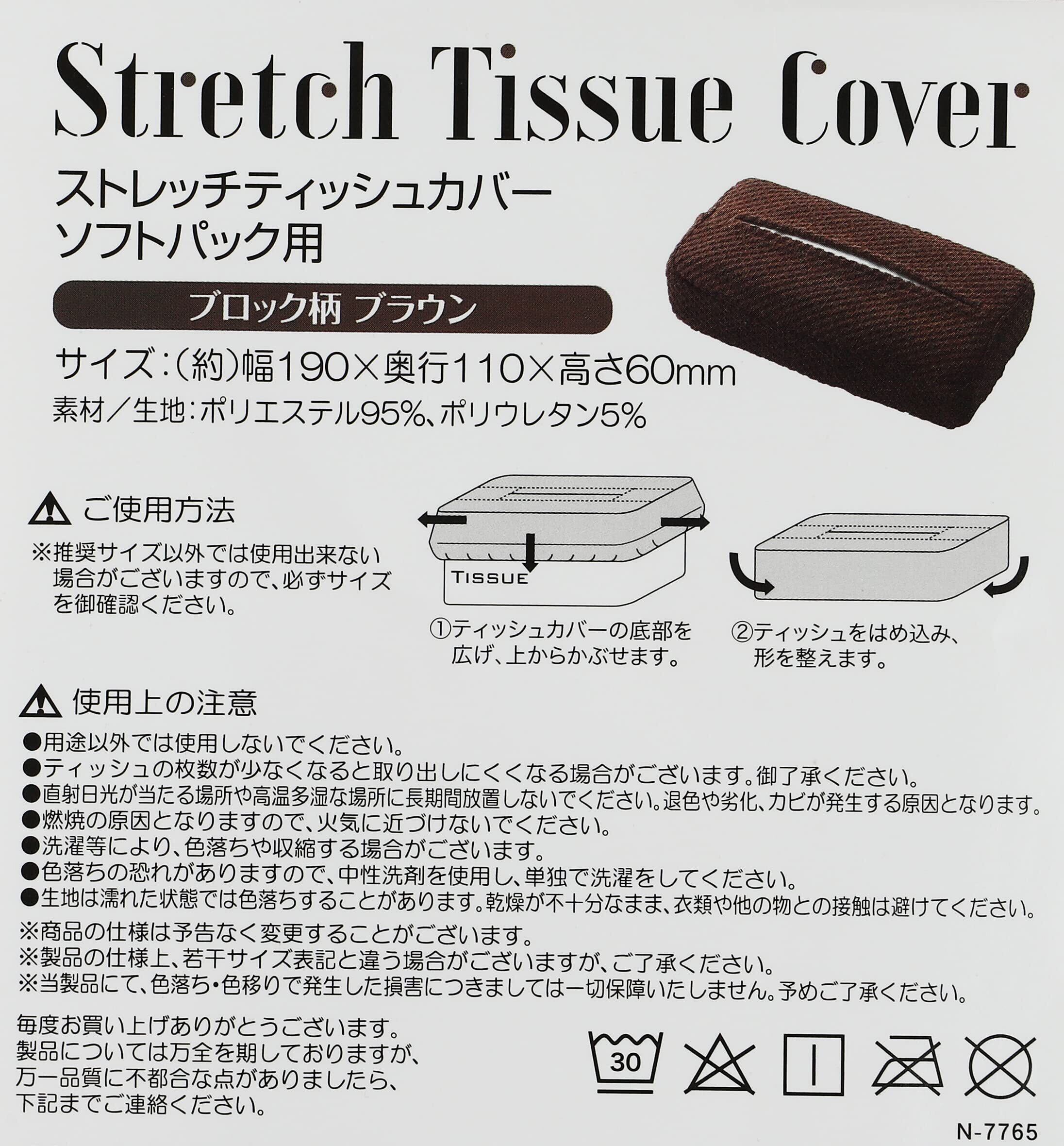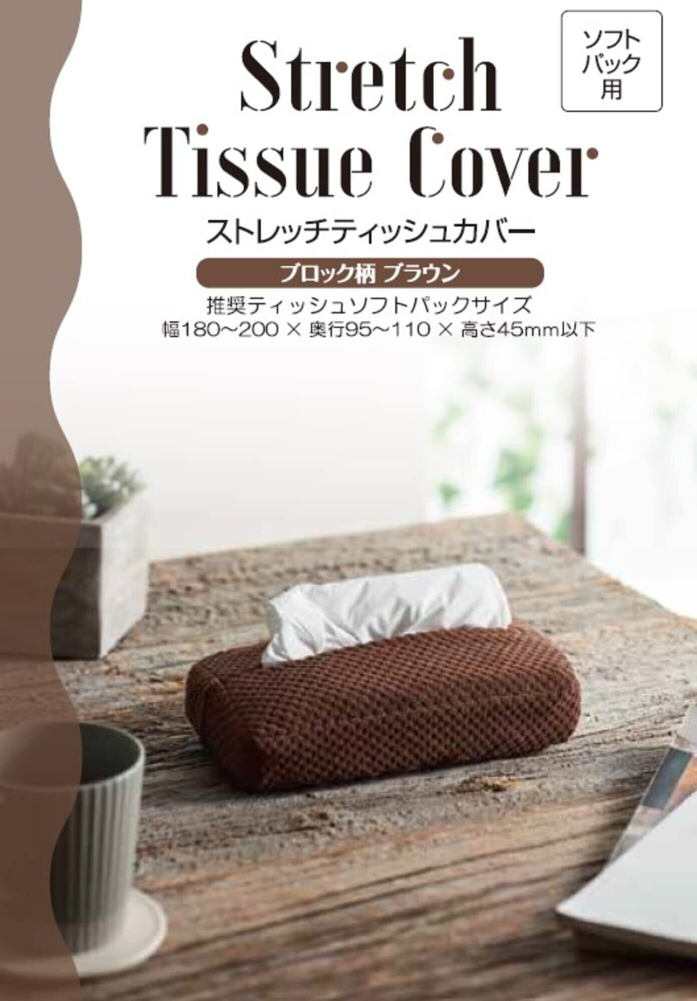 パール金属 ストレッチティッシュカバー ソフトパック用ブロック柄 ブラウン N-7765