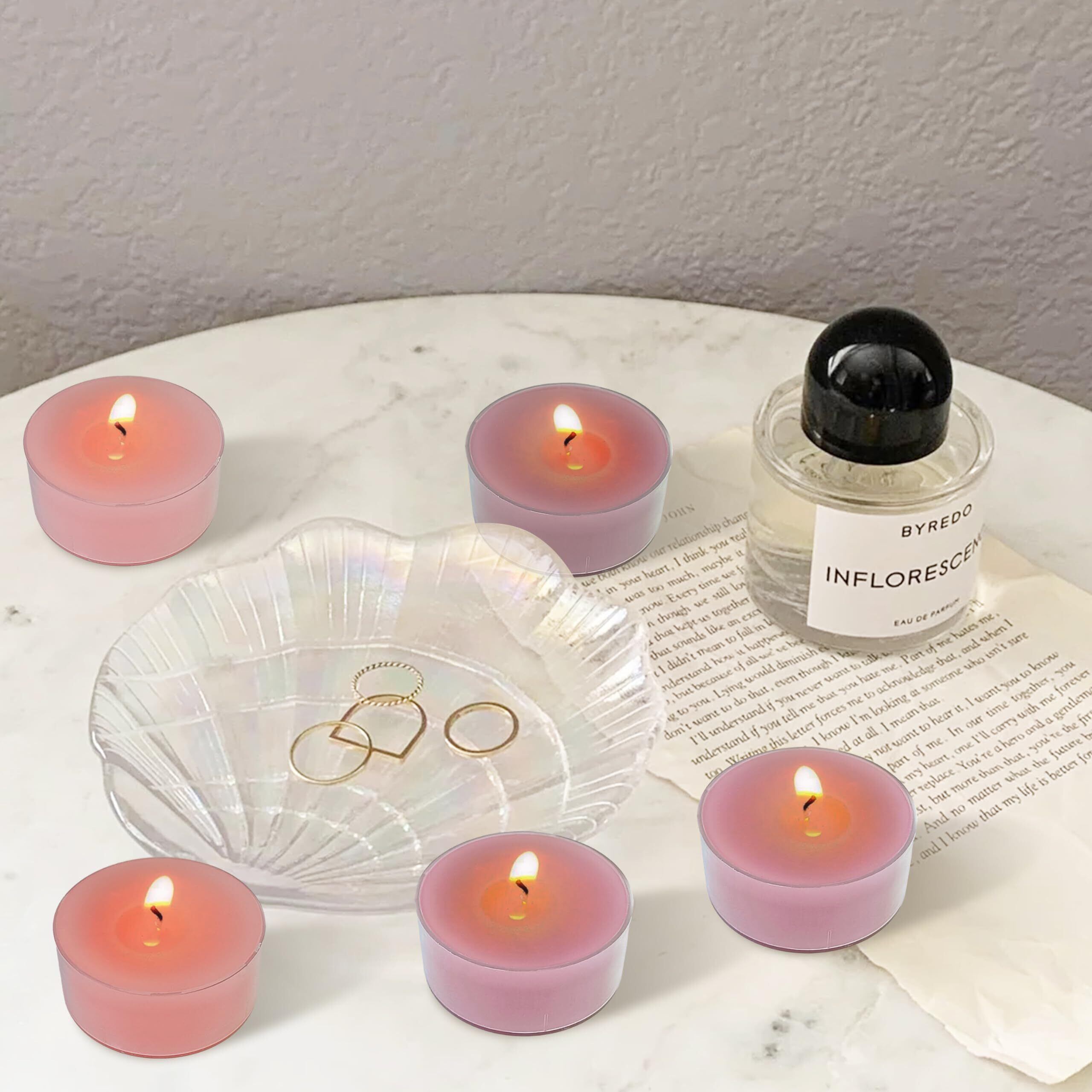 【新春セール】香りのティーライトキャンドル ミニアロマキャンドル 24個 円形 Tealight Candles 透明カップ蝋燭 燃焼6-7時間 家の装飾 暖茶 結婚式 キャンドルセット (Gradient Pink-ローズの香り)