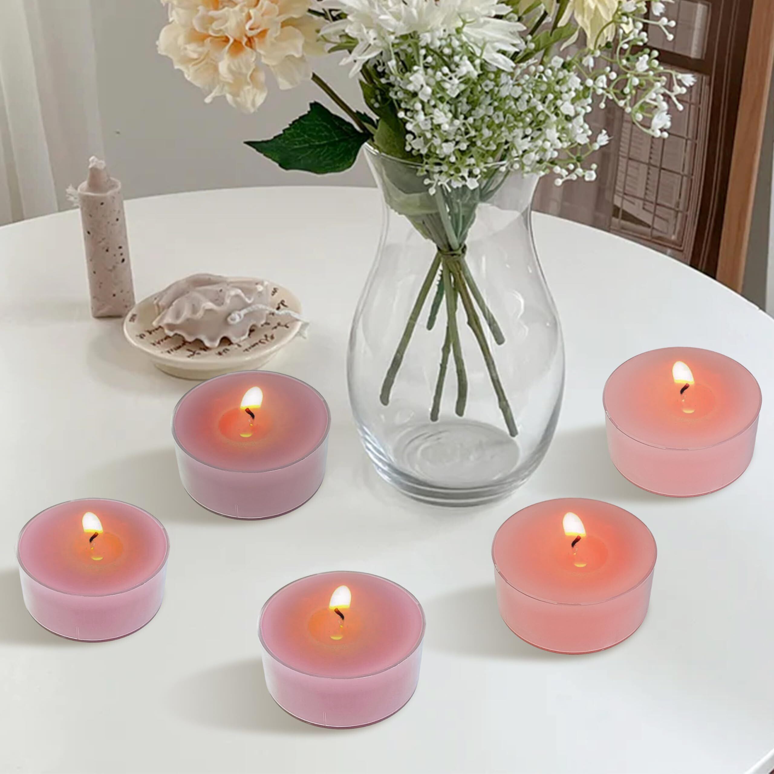 高品質のキャンドル: 天然パラフィンワックスとエッセンシャルオイルをブレンドした豪華なティーライトキャンドル。ろうそくの燃焼時に煙が出ず、水が滴らず、0.7「高x 1.5」直径、無鉛100%綿芯、無毒