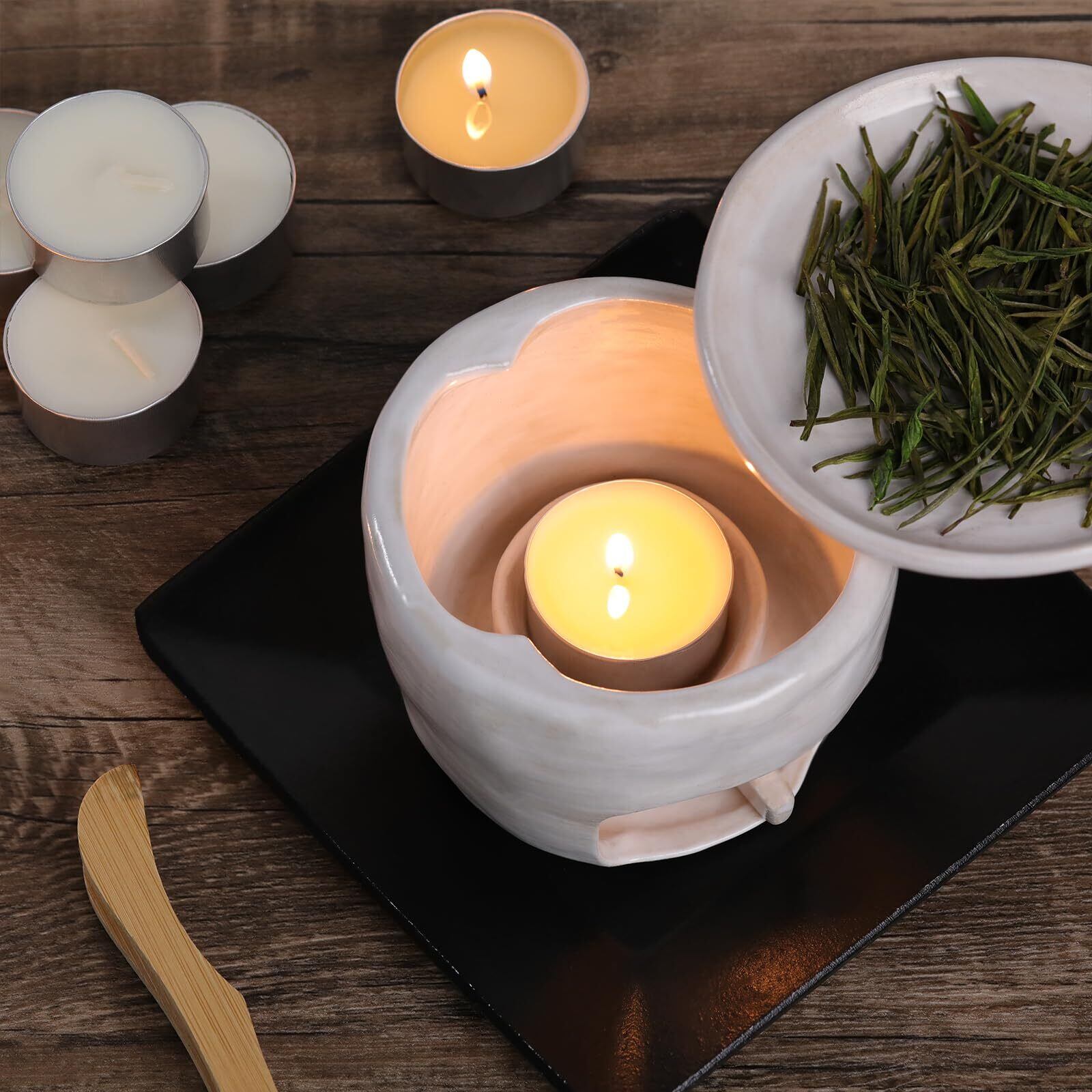 【使用中に無煙、無香】他の香りにお邪魔しない、仏壇や茶香炉やアロマポットに最適です。各キャンドルの芯は 100% コットンで作られており、煙を出さずに均一に燃焼します。安定した炎が最後まで続き、茶香炉の癒しの香りをお楽しみいただけます。キャンドルストーブと組み合わせてお茶やコーヒー、食べ物を温めることができます。