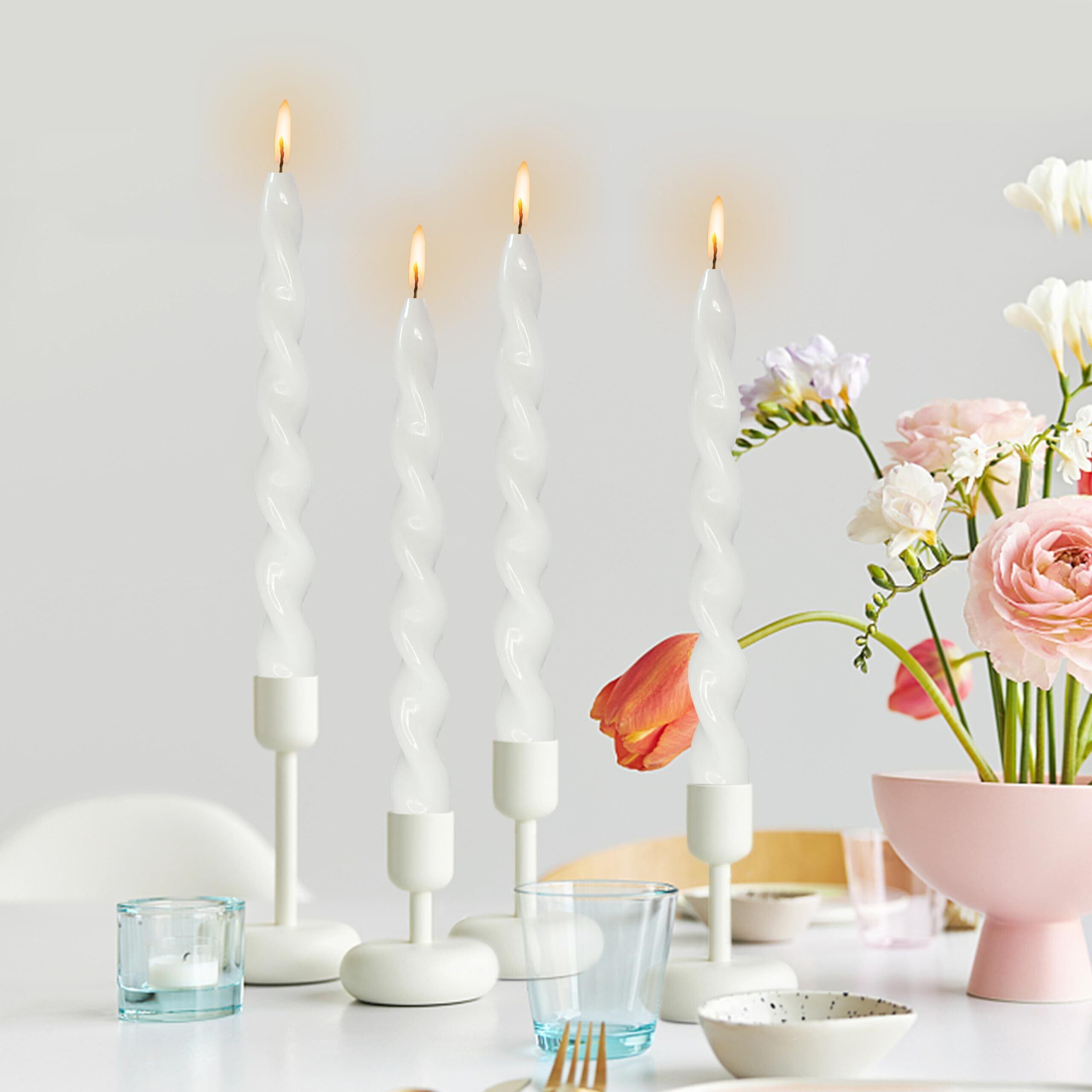 【在庫処分】10inch テーパーキャンドル 4個入り スパイラルキャンドル ろうそく ロウソク ウェディング/クリスマス/小屋/ホームインテリア キャンドル ギフト (white)