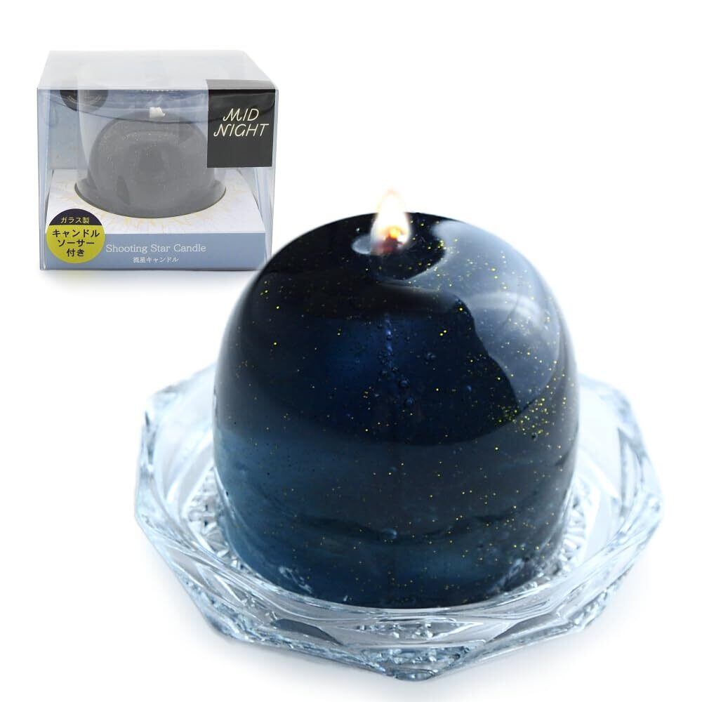 【キャンドル プレゼント】「一日5分、お部屋の灯りを消して星空の様な輝きに癒されませんか?」をコンセプトに制作された「流星キャンドル」から宵闇に瞬く 「ミッドナイト」が登場。【ソーサー付】
