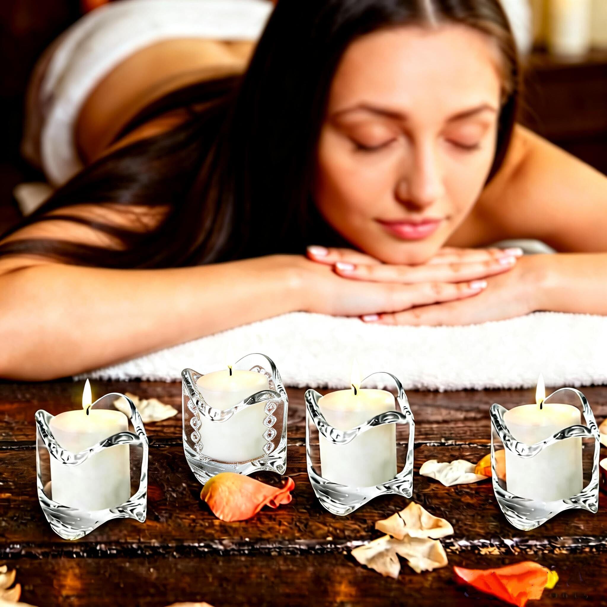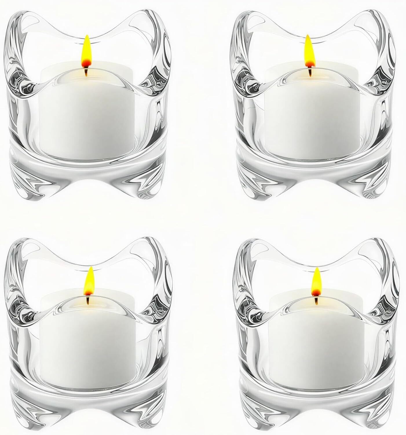 4 個セット クリアガラス ティーライトホルダー 各種形状 直径 4cm 対応 キャンドルスタンド ディナー・パーティー・結婚式・インテリア・バー飾りに最適 (ウェーブ型)