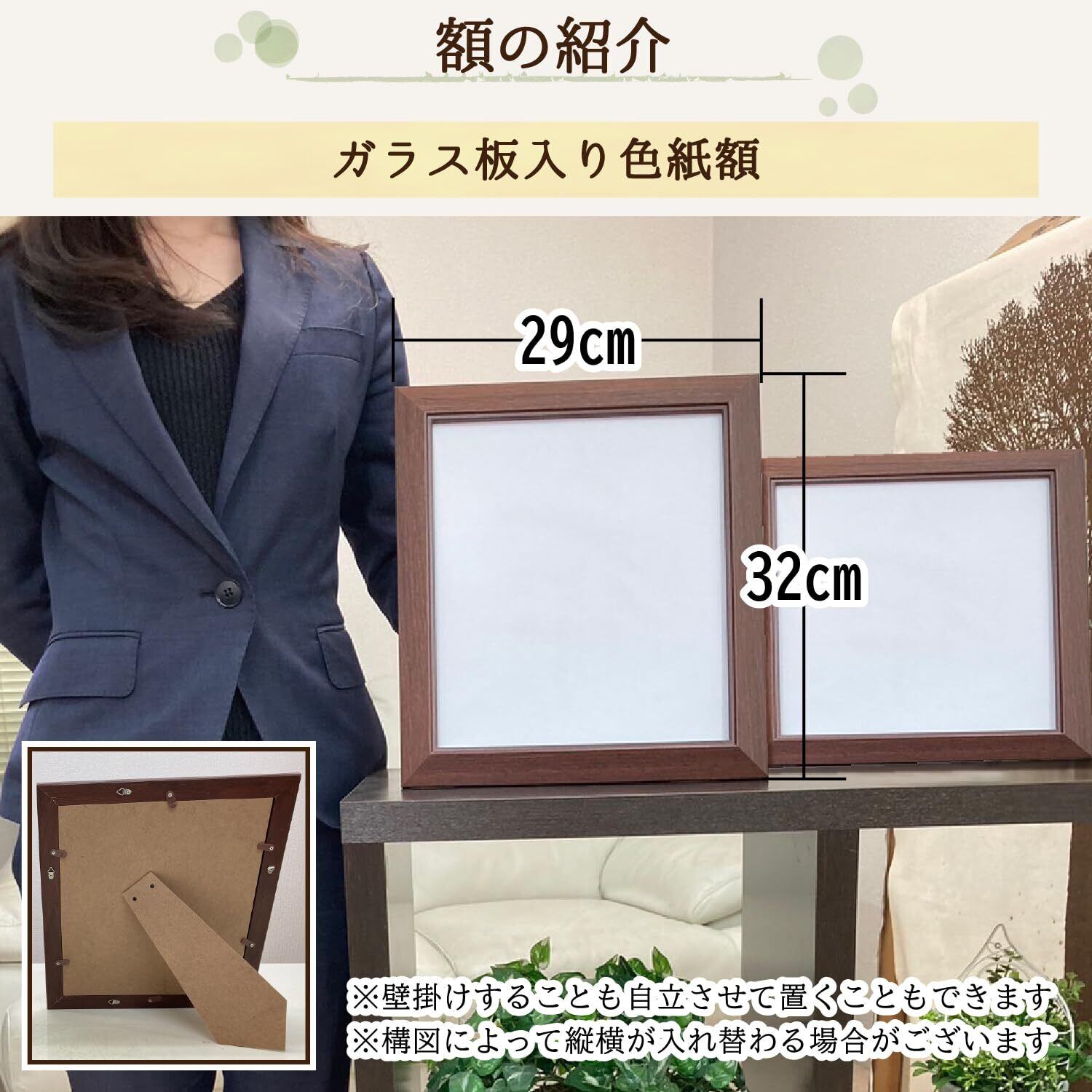 額外形29x32cm 作品は色紙サイズ24x27cm 壁掛け,立てかけも可能