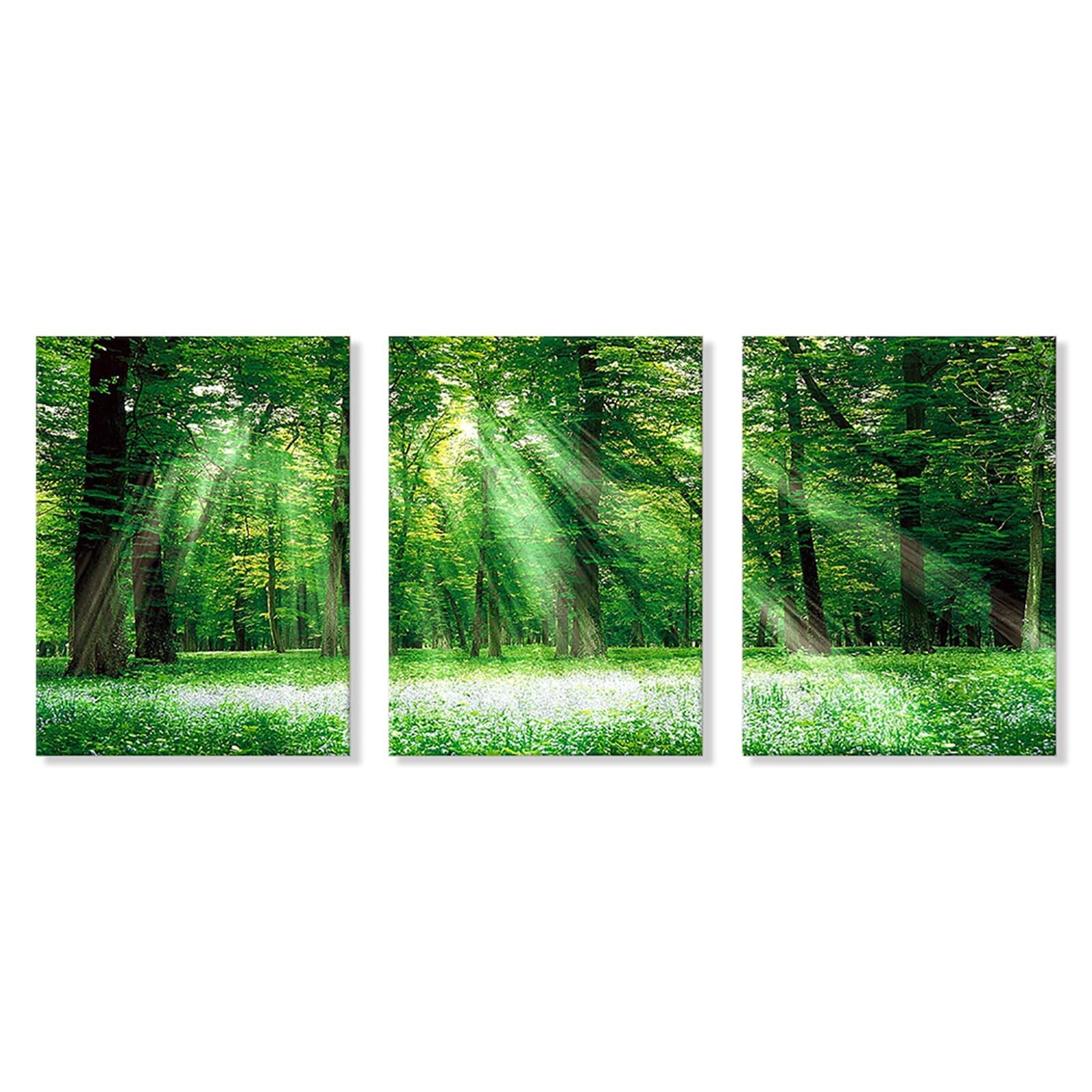CAMULLE アートパネル 3枚 森林 風景画 緑の森 太陽の光 植物 飾り絵 モダンアート ポスター 部屋飾り