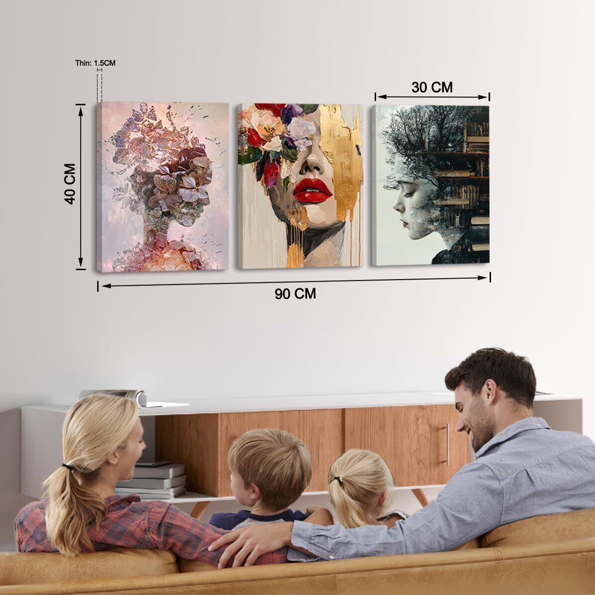 絵画サイズ:30x40x1.5cm x 3枚。 同じ絵のコレクションは3種類ありますので、お好きな順番で飾っていただけます。 このアートプリントキャンバスがお客様に合っているかどうか、まず掛けたい壁のサイズを測ってください。