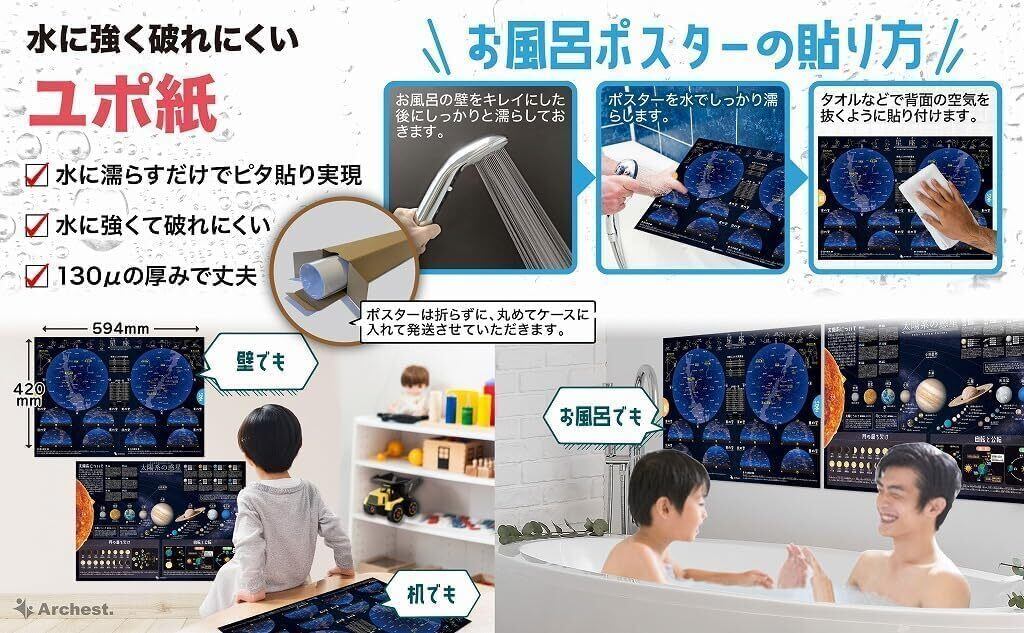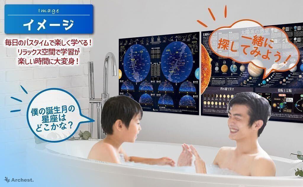 お風呂ポスター 星座と太陽系 夏・冬季節の星座を学べる 防水・知育ポスター 2枚セット Archest