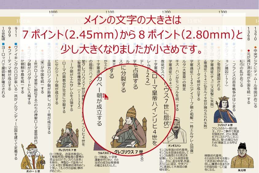 A4,7枚をつなげると横幅約150cmの大型年表になります。