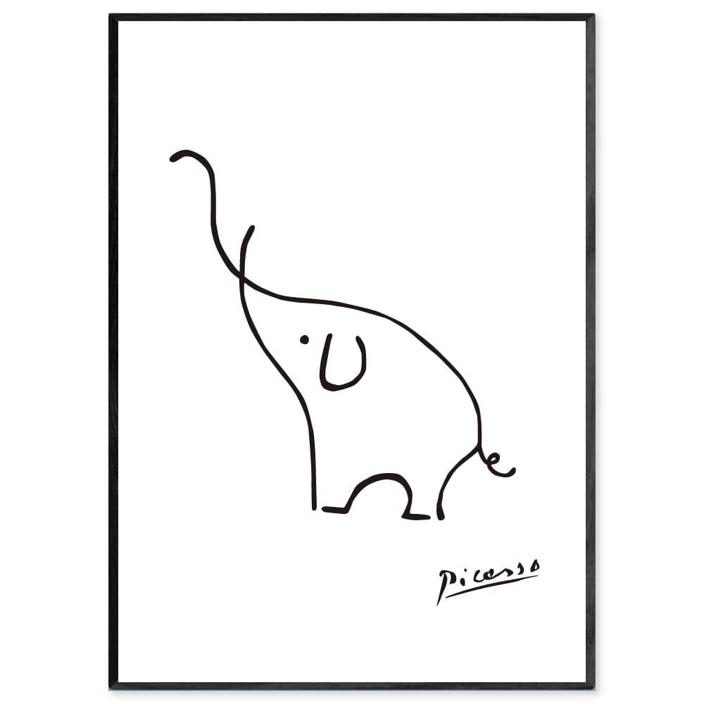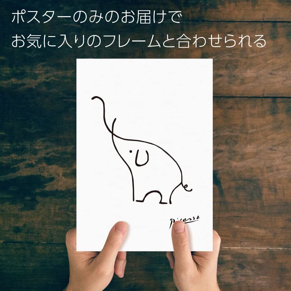 ピカソ ポスター アートポスター リトグラフ ドローイング 象 SQIP (スキップ) ラインアート 線画 モノクロ 白黒 絵画 絵 A4 北欧 おしゃれ インテリア 010 (A4(ポスターのみ))