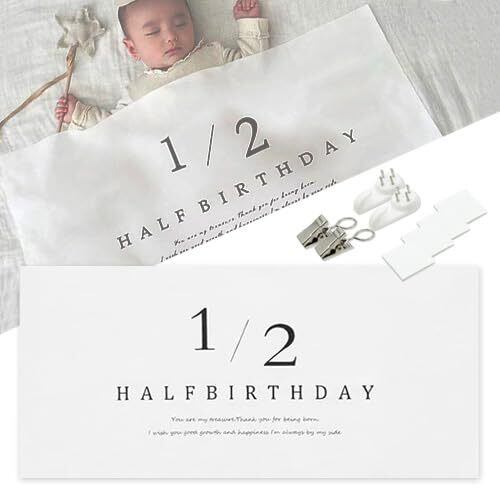【商品説明】 ・ハーフバースデー用タペストリー、1/2歳(6か月)のお誕生日をお祝いする、おしゃれなハーフバースデー 飾りセットです。 ・白のモノトーン色調でお誕生日の飾りとしては最適です。男の子にも女の子にもマッチするデザインです。・シンプルなデザインで、どんなお部屋にもマッチします。 ・商品内容:バースデータペストリー+壁掛け用取付グッズ付(フック+両面シール)。サイズ:縦約40cm×横約100cm 【商品仕様】 サイズ:縦約40cm×横約100cm。