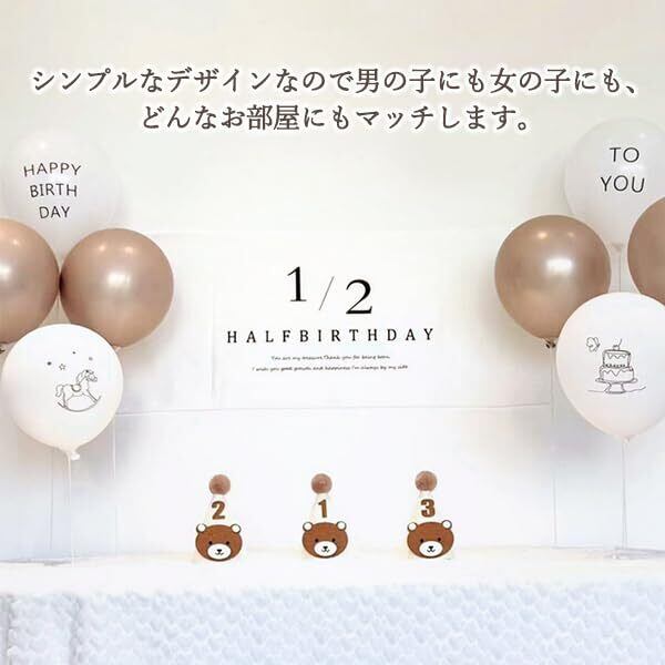 ハーフバースデー用タペストリー、1/2歳(6か月)のお誕生日をお祝いする、おしゃれなハーフバースデー 飾りセットです。