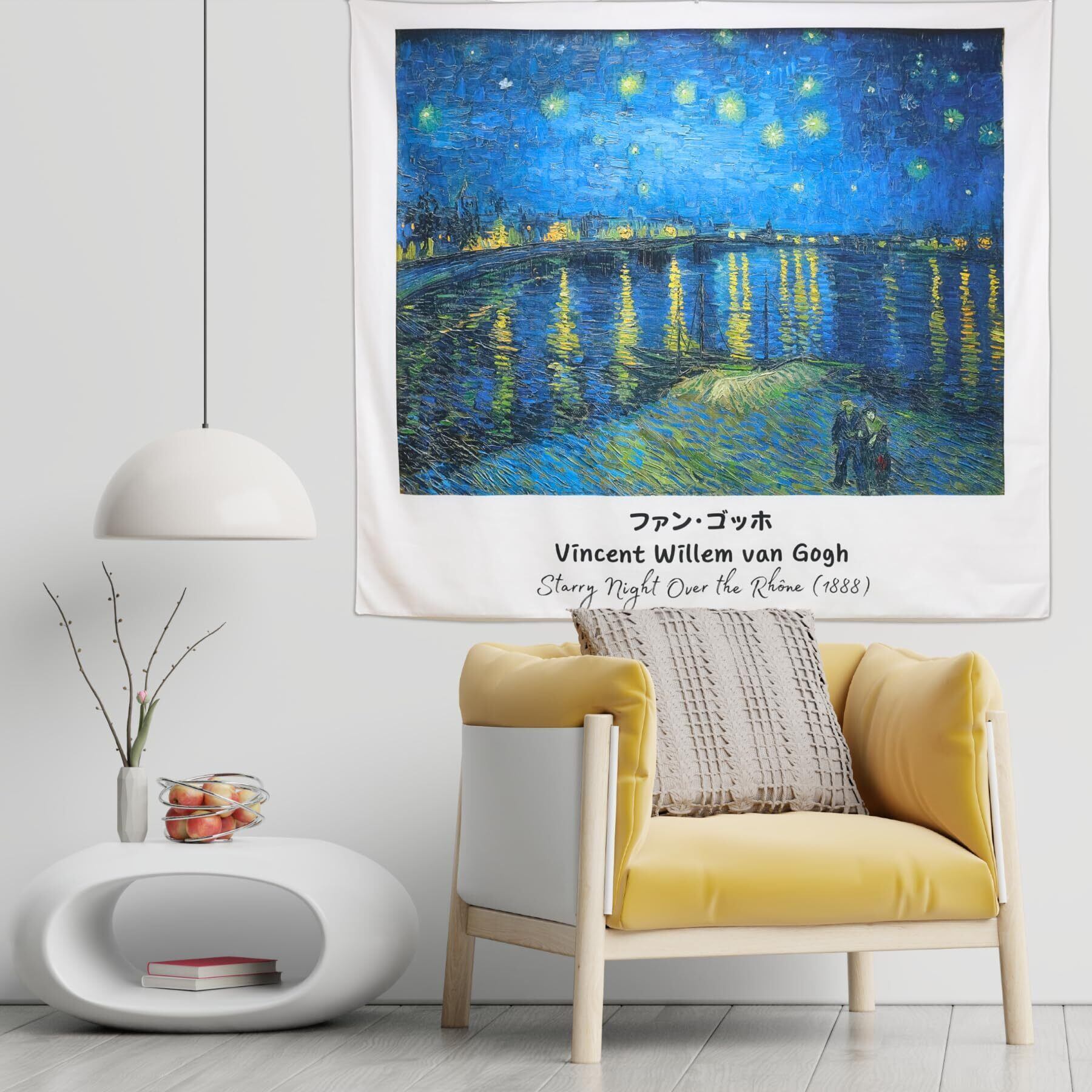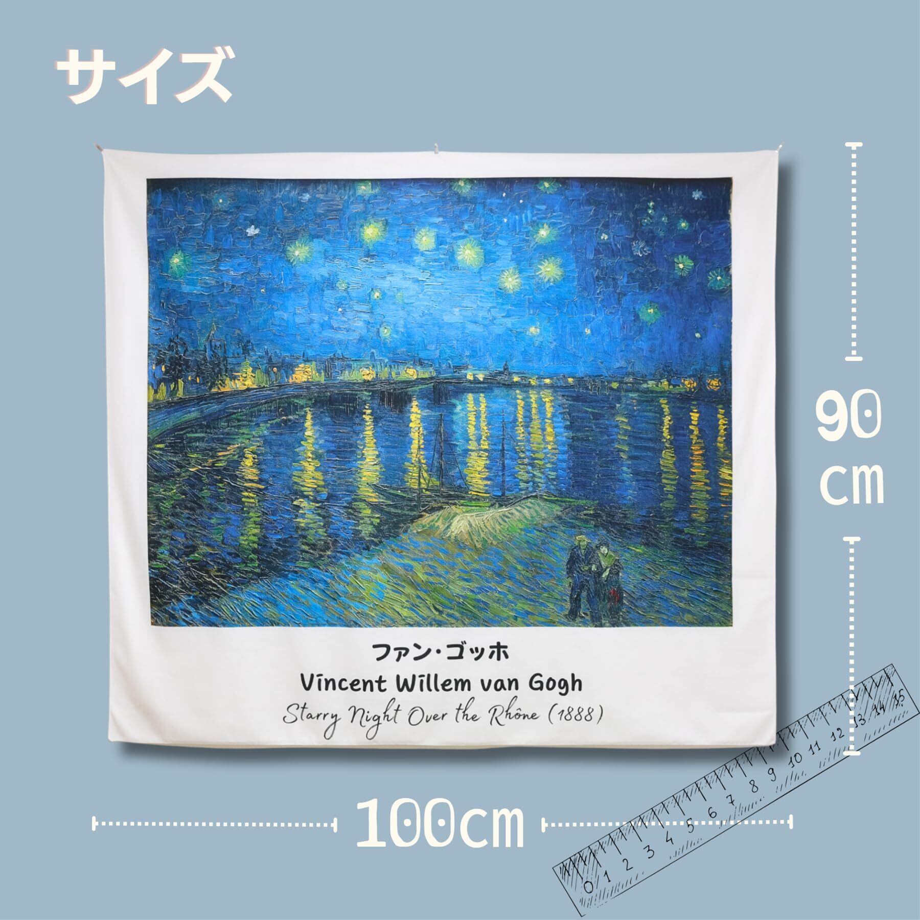 ゴッホ 名画 タペストリー 大判 おしゃれ 壁掛け 布ポスター インテリア 背景布 マルチカバー カフェカーテン 目隠し 多用途 (ローヌ川の星月夜, 100㎝×90㎝)