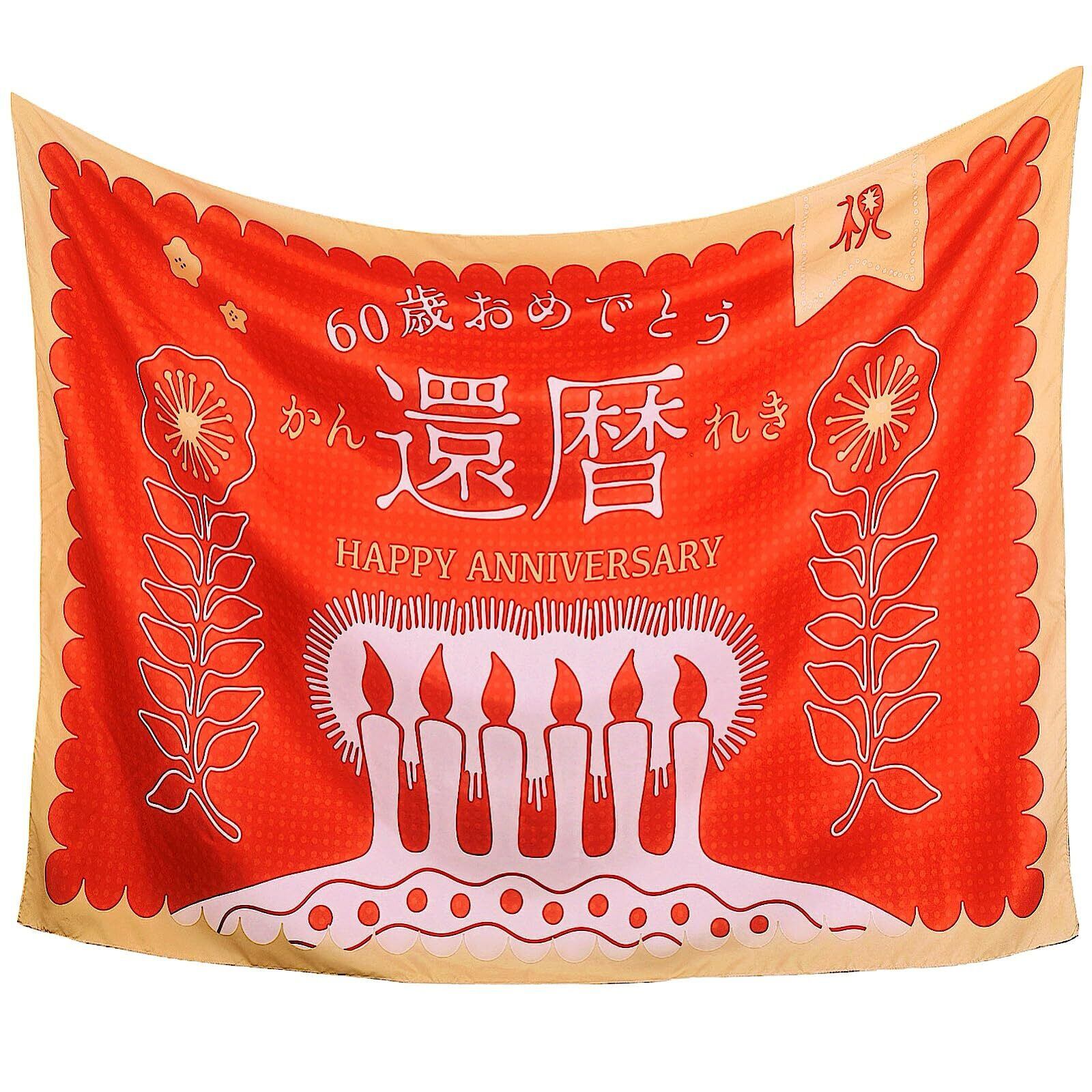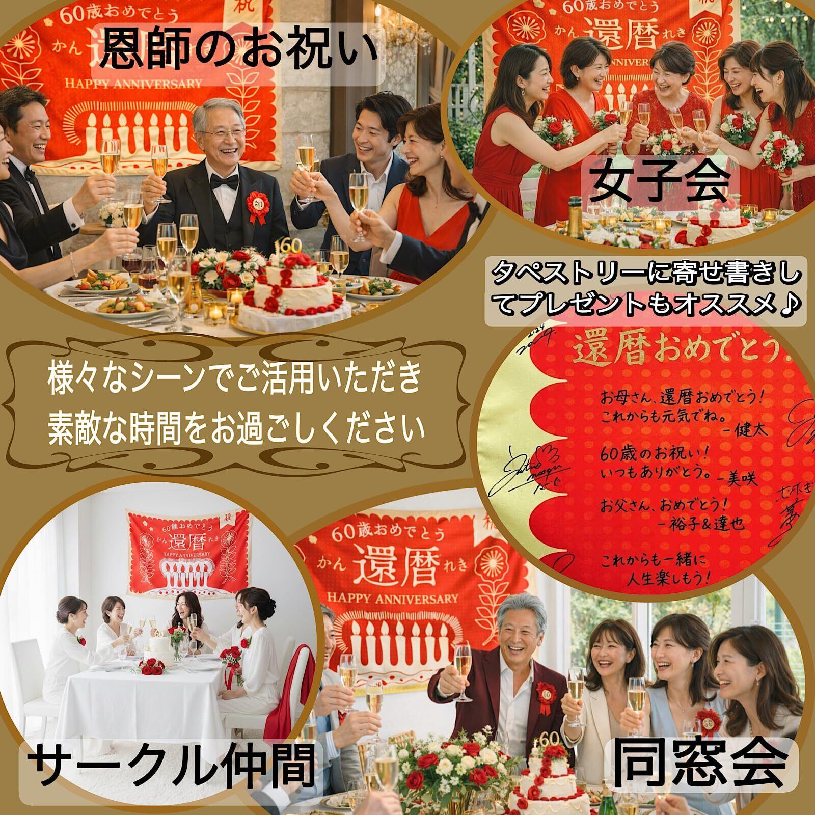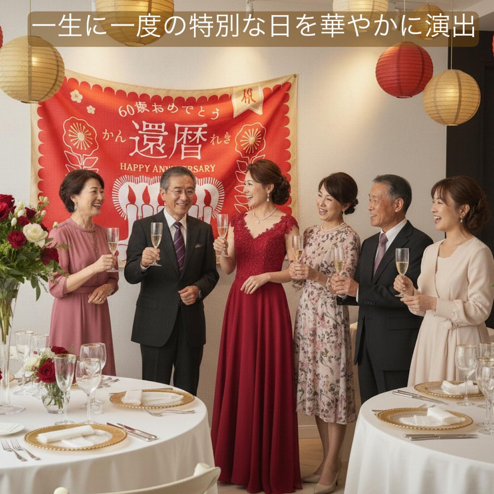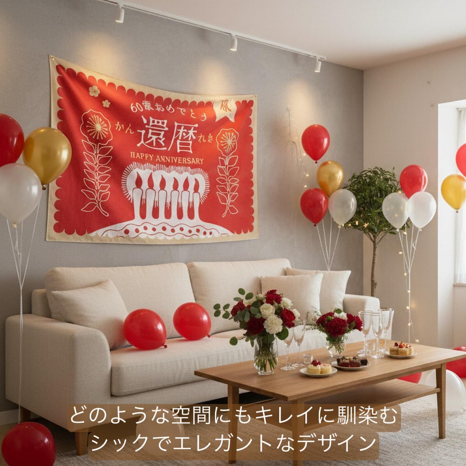 還暦飾り タペストリー 還暦祝い 150×100cm 大判 背景 還暦グッズ 同窓会 飾り付け 装飾 赤 金 長寿祝い 女性 軽量 送別会