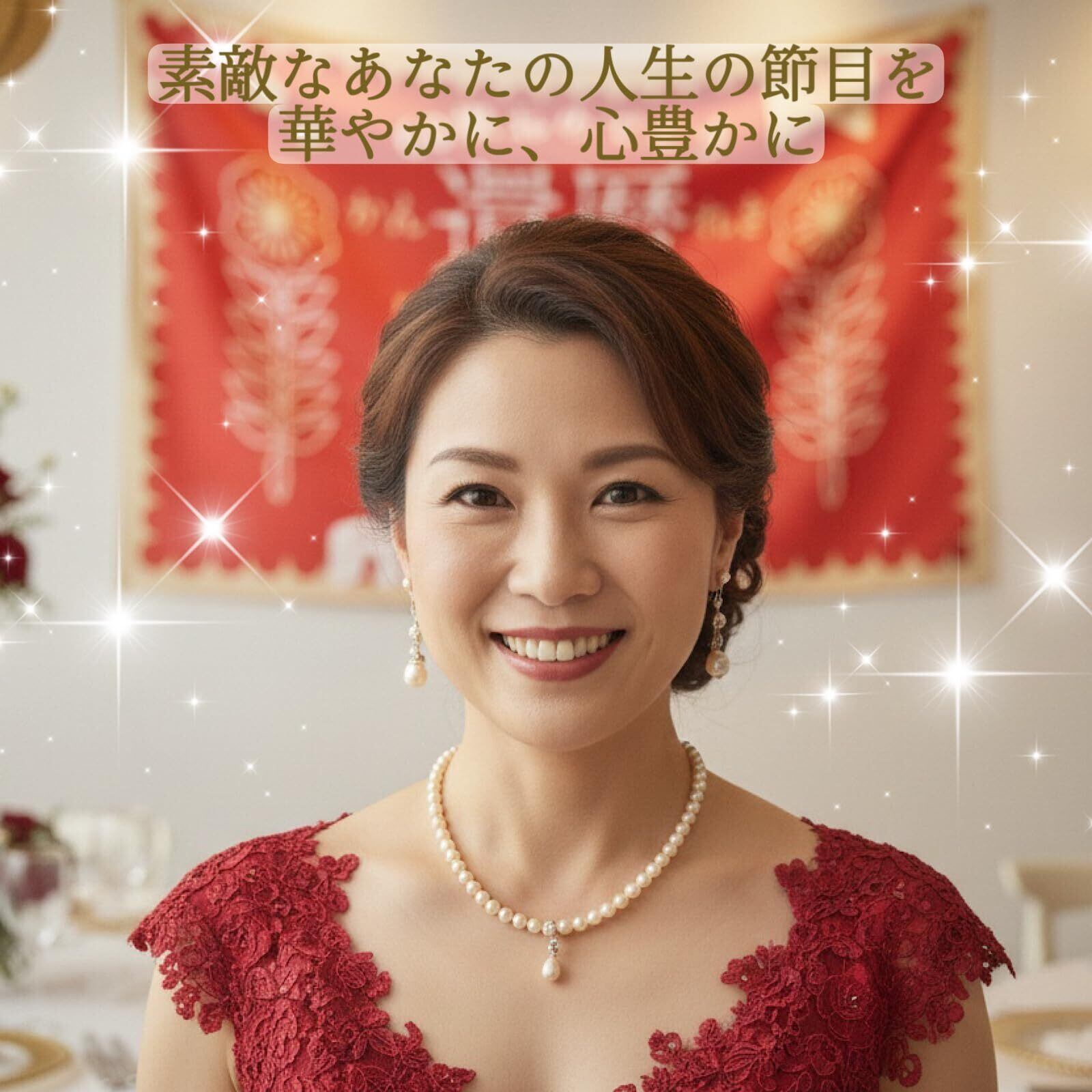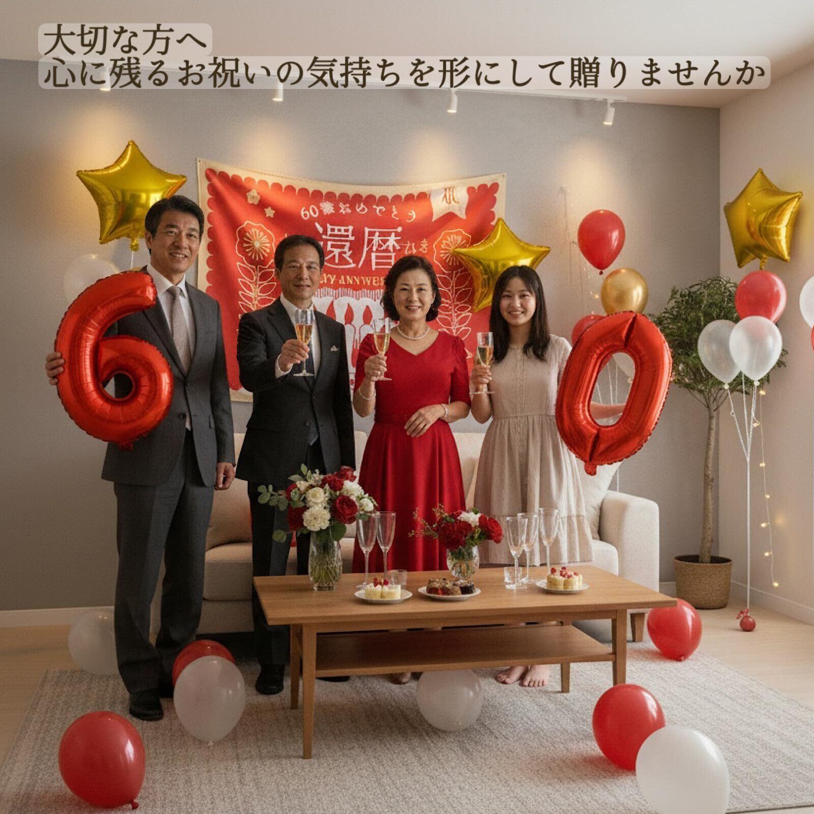◆華やかで上品な還暦祝いにぴったり 深紅と金の組み合わせが美しい、女性のための華やかで高級感あるデザイン。