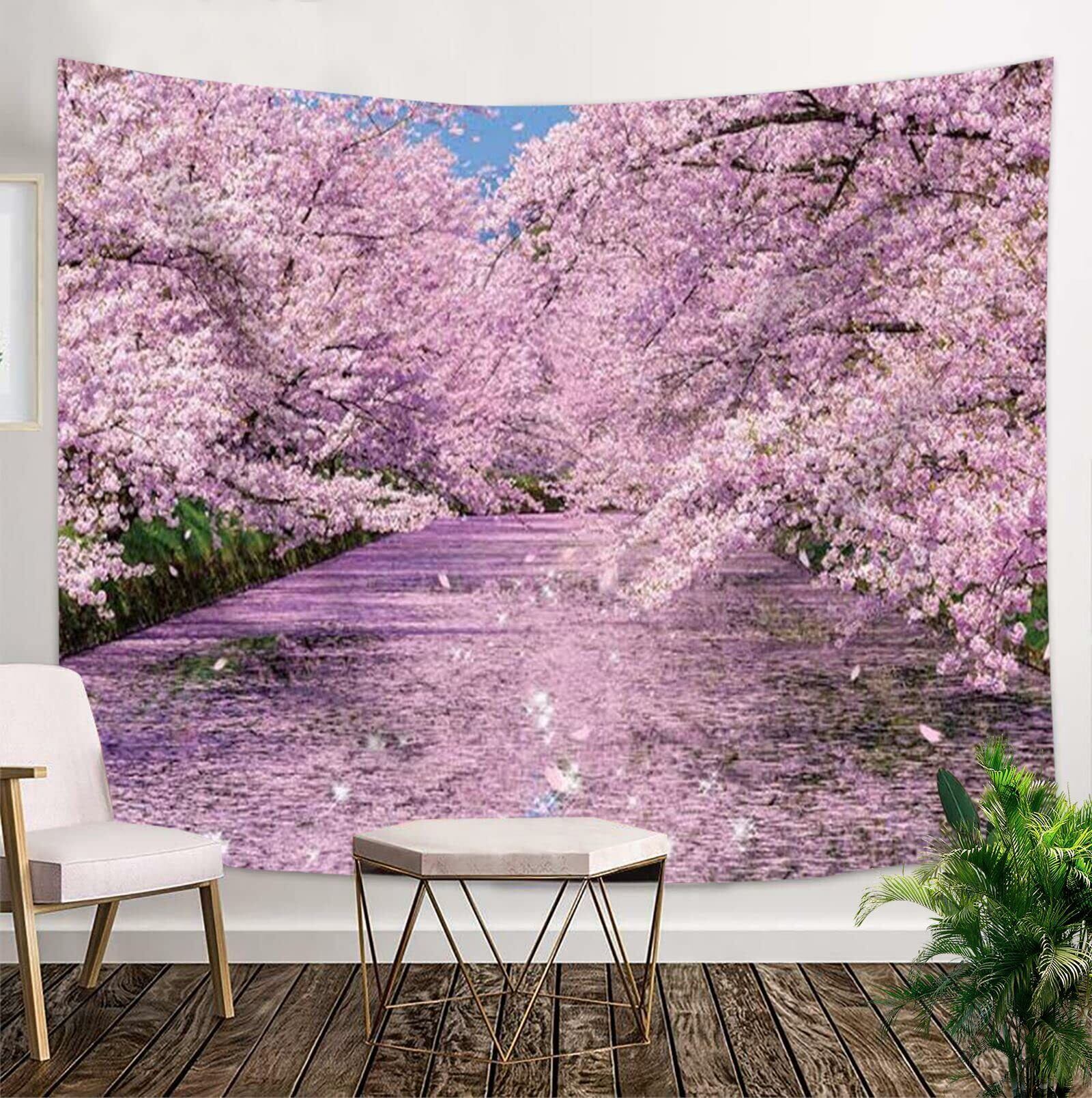 【数量限定】ANLAI 小川の両側にある桜の木のタペストリー満開の桜の壁掛け家の装飾のための寝室の居間 230cm x 150cm