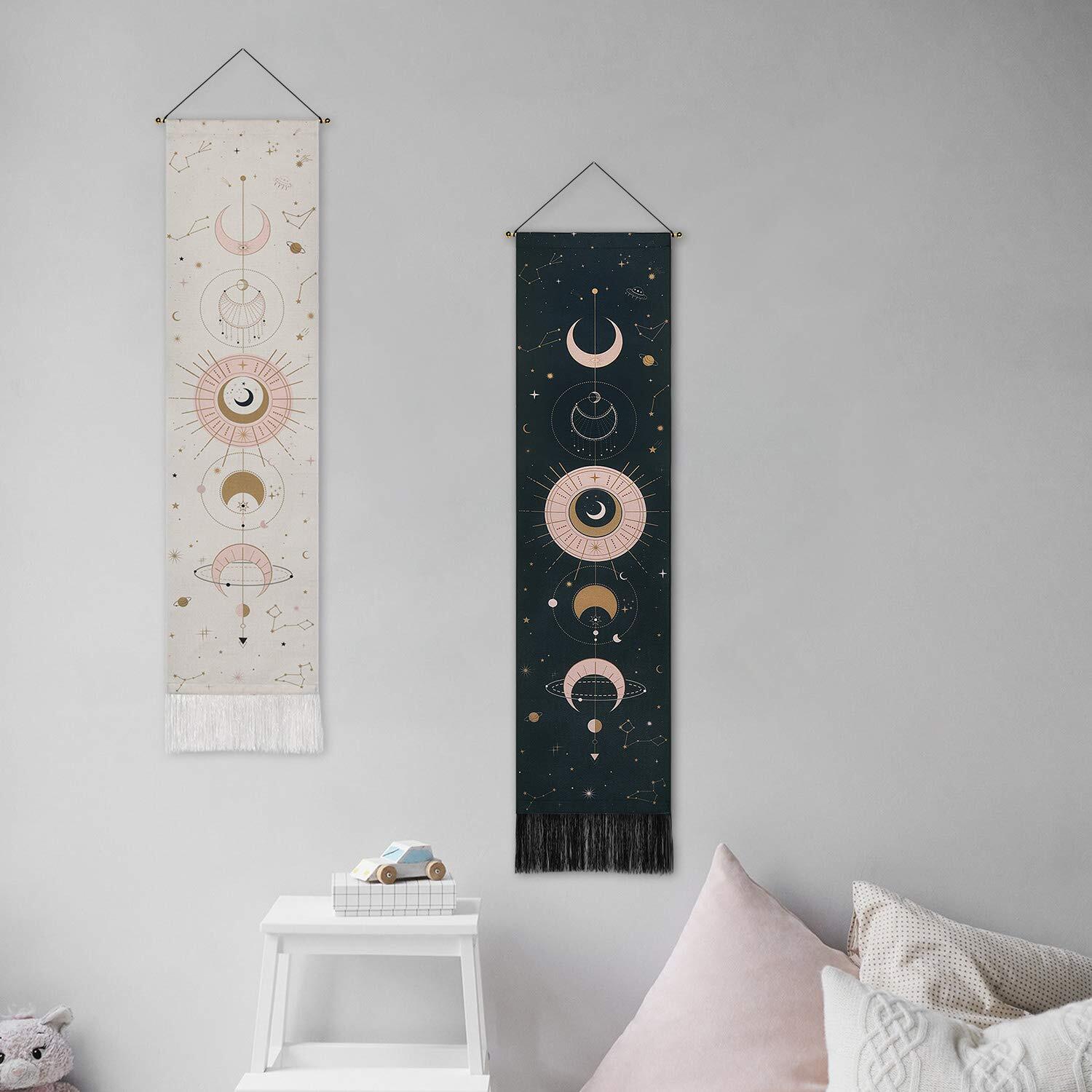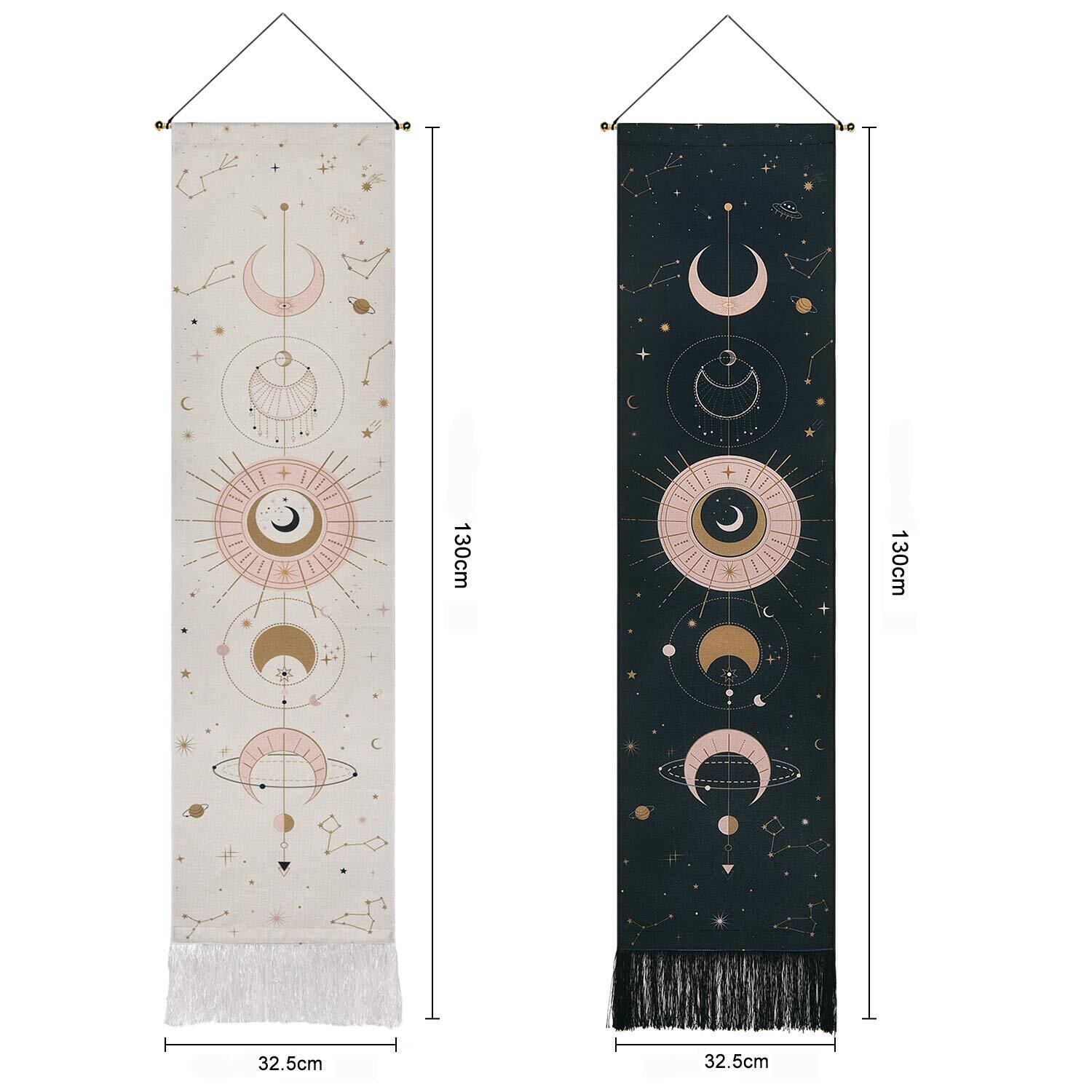 【在庫セール】2個入り 月タペストリー 壁布 装飾布 北欧風布ポスター 壁掛け 壁飾り 模様替え 装飾用品 コットンリネン 芸術 インテリア 多機能 おしゃれ 部屋や窓の飾り リビングルーム ベッドルーム 個性プレゼント 130cm*32.5cm