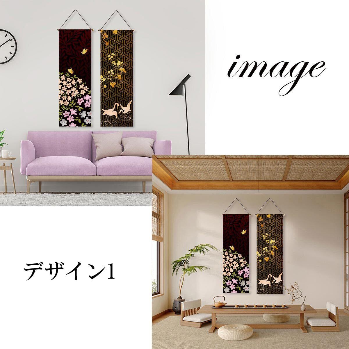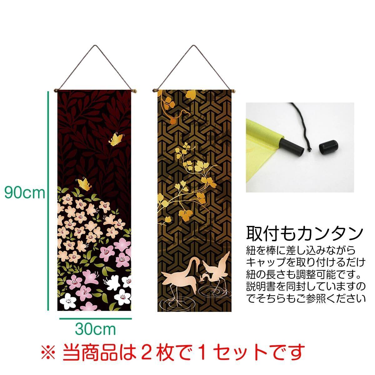 【2本セット】場所をとらず、収納もコンパクトな掛け軸タイプの和柄タペストリー一対。