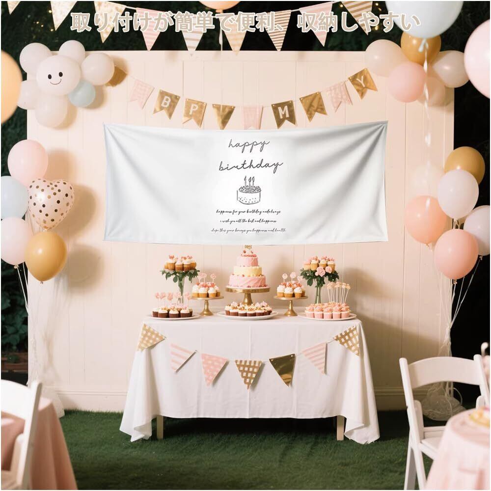 【取り付け簡単・お手入れラクラク】四隅に取り付けループ付きで壁に簡単に設置可能。シワになりにくく、軽く洗濯できるため、誕生日タペストリーとして繰り返し清潔に使えます。