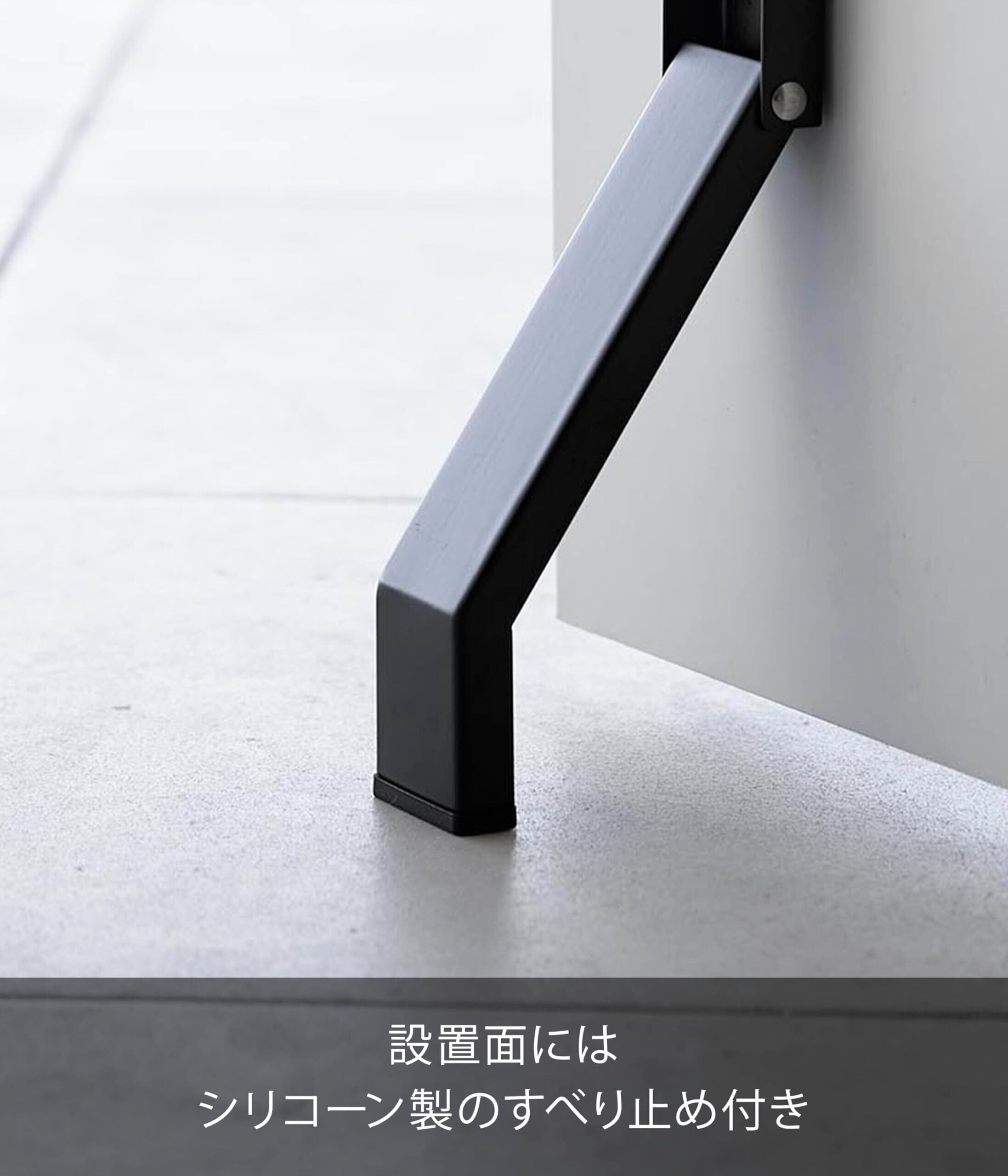 山崎実業(Yamazaki) マグネット 折り畳みドアストッパー ブラック (使用時)約W4.5×D7×H28cm タワー tower 強力マグネット 簡単取付 玄関ドア 片足で操作可能 3721