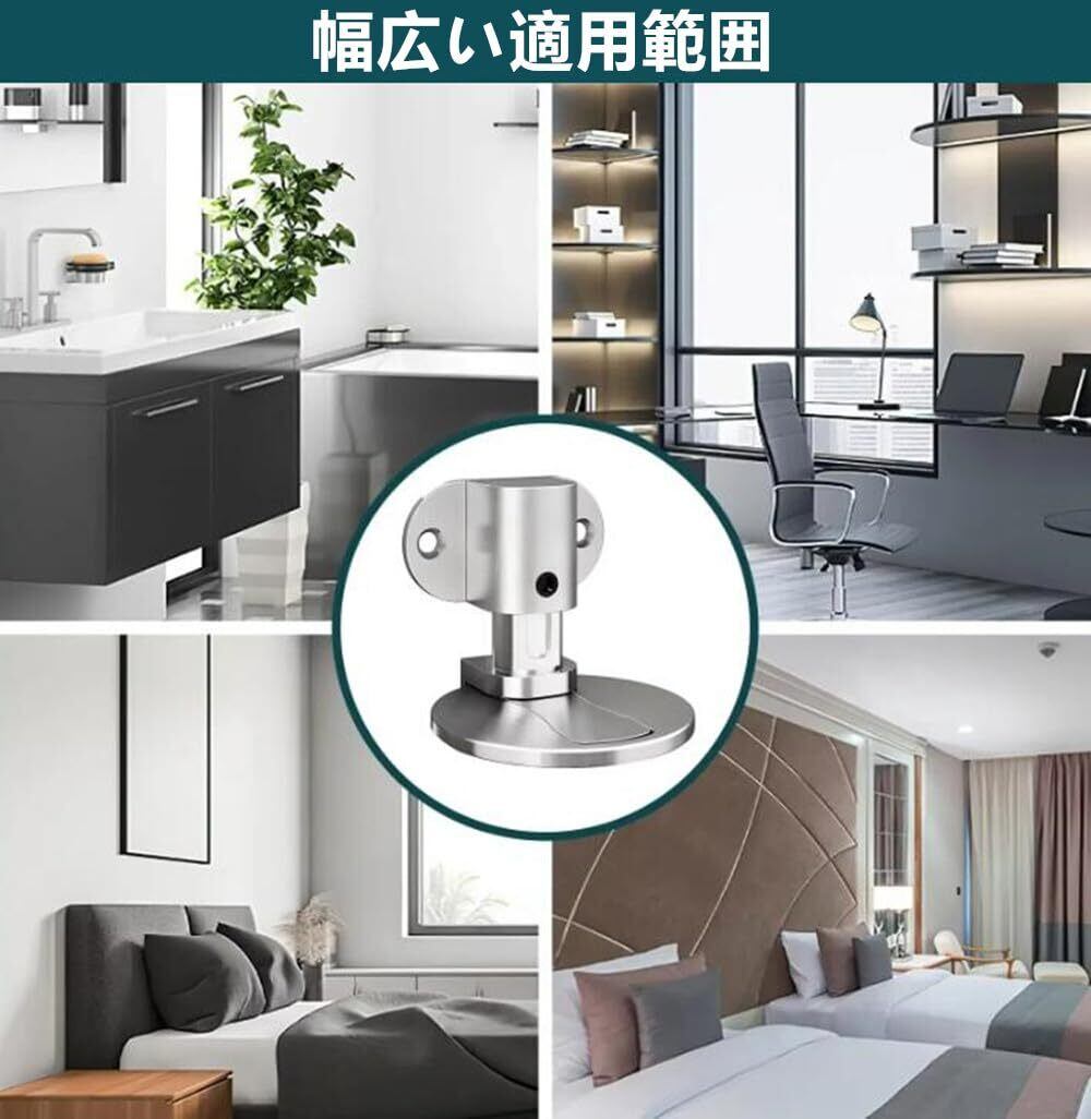 【用途】フロアドアストッパーのユニークなデザインは、ドアが開いた状態を維持し、風や衝突による閉鎖を防ぐことで理想的な保護を提供します。高度な磁気システムと安定した構造により、どんな状況でも長期にわたるパフォーマンスをお楽しみいただけます。オフィス、キッチン、寝室、バスルーム、居間、その他の屋内ドアに適しています。