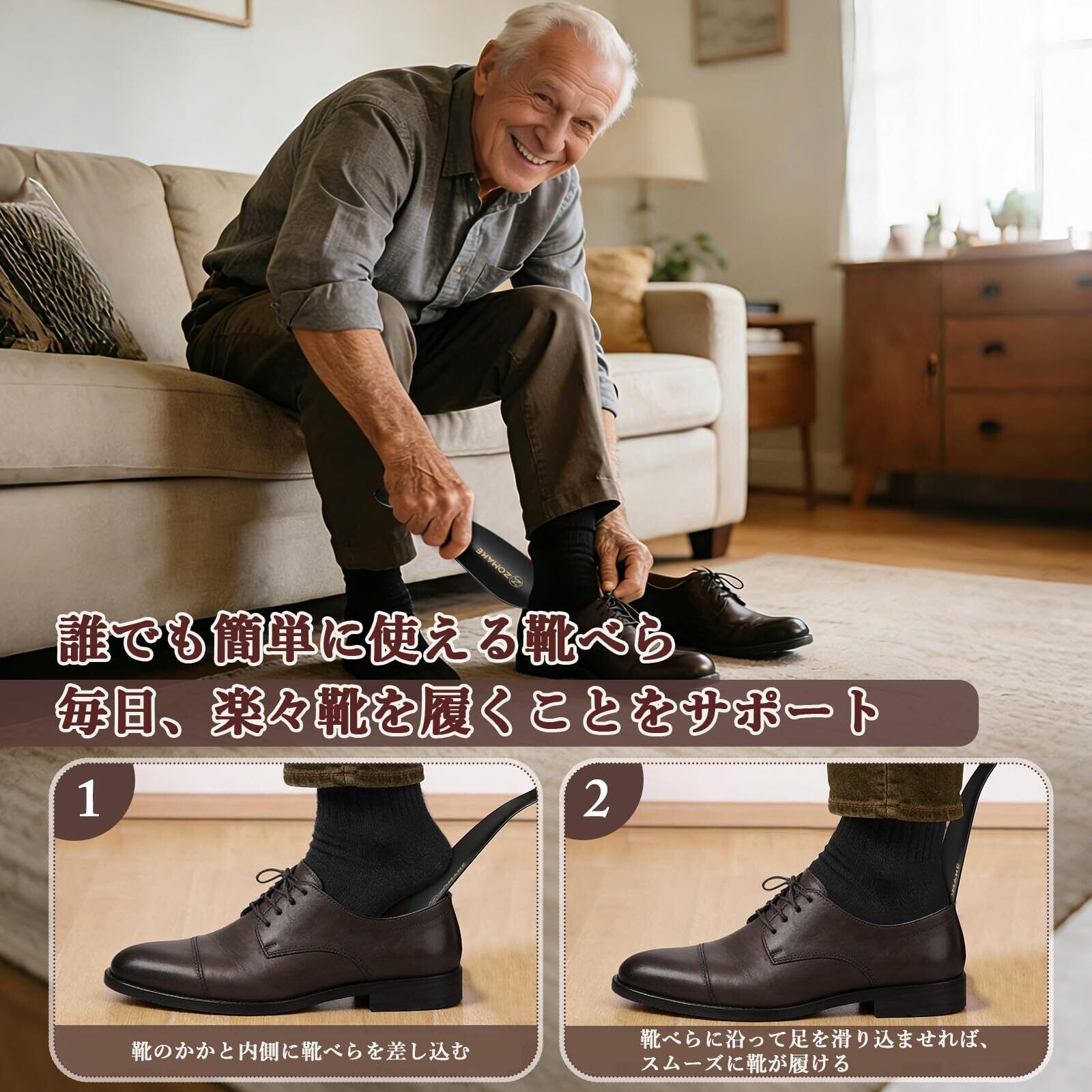 【お気に入りの靴を保護】靴べらを日常的に使用することで、靴を履くことによる摩耗から守ることができます。靴べらを使えば、お気に入りの靴がシワになる心配もありません。