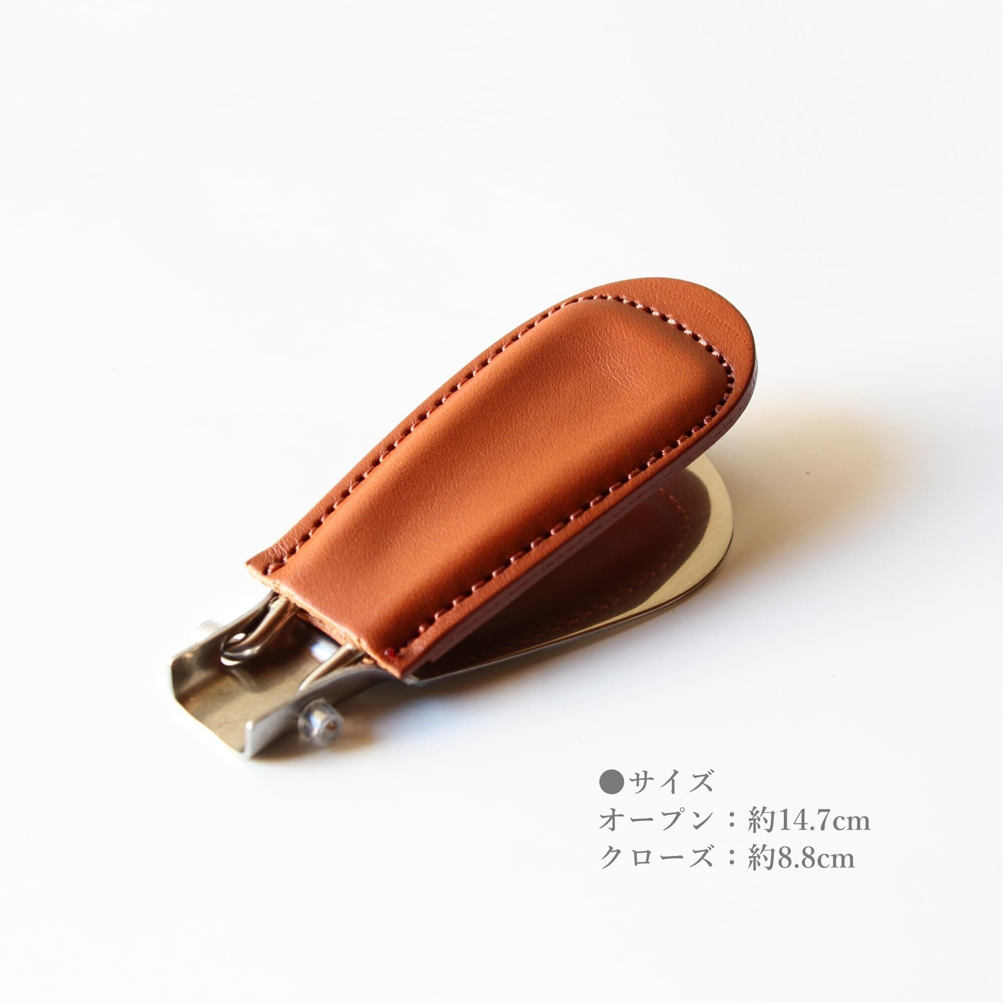 靴べら/携帯用 イタリアンナチュラルレザー ブッテーロ使用 メタルシューホーン 折り畳み式 オープン時14.7cm クローズ時8.8cm