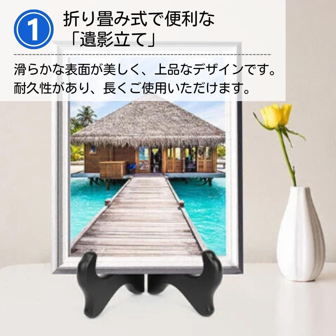 【2022最新】ateena 遺影立て 仏壇用 写真立て 遺影 額立て 額縁 スタンド 皿立て 高さ30cm 木製 B (ブラック, 30cm)